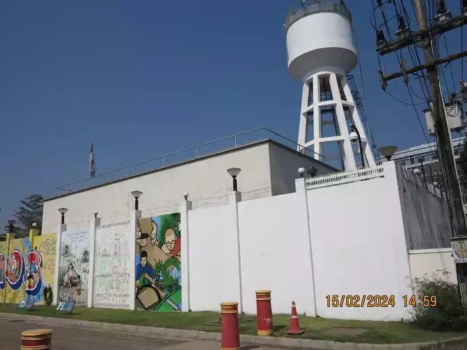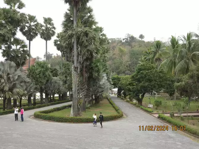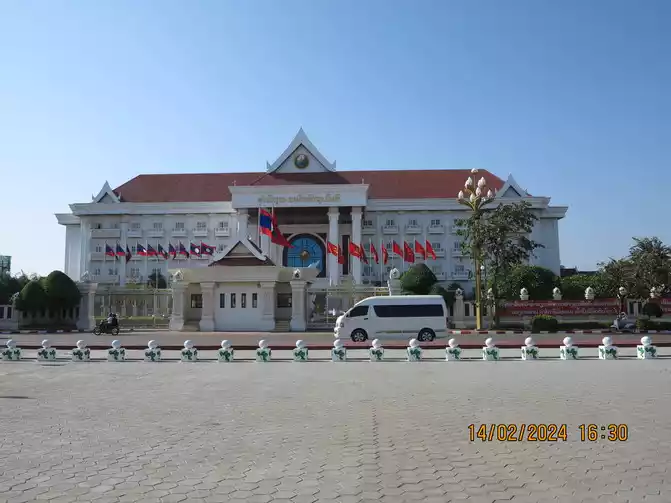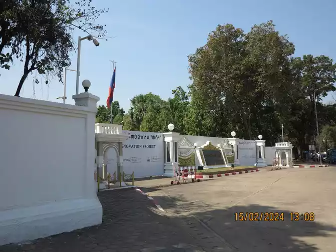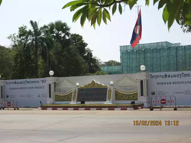 We walked to the entrance of the Lao Presidential Palace. The internal buildings were under repair and were not complete because they were surrounded. There were no guards at the entrance, so we took photos at will.