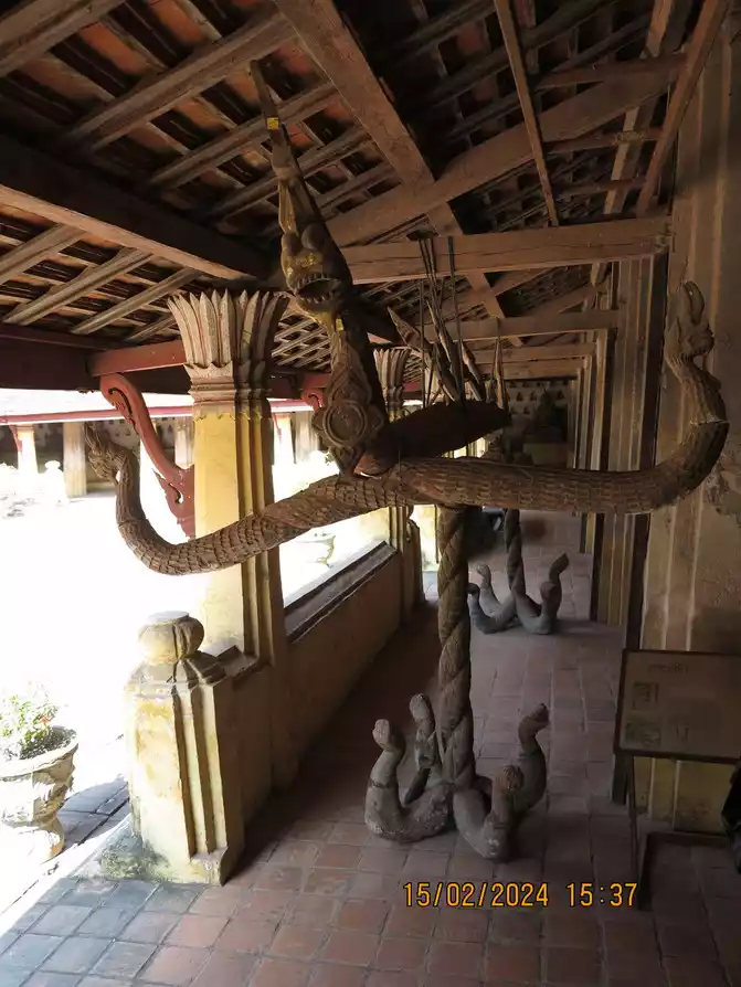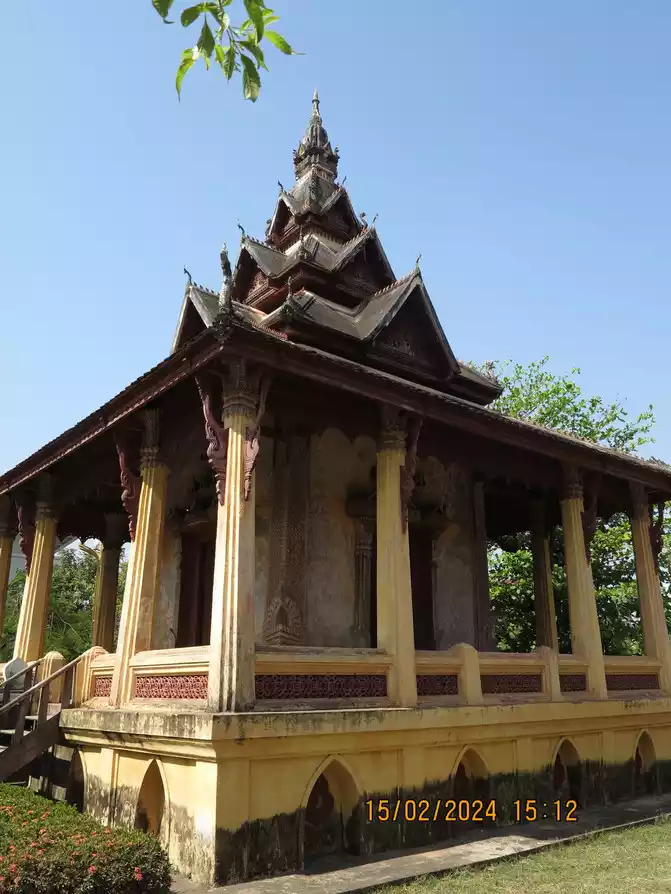 Opposite is Wat Si Saket, also called Saket Temple, the oldest temple in Vientiane. Founded in 1818, it was built on the orders of King Anuvon, the last monarch of the Lancang Kingdom. It is a famous temple in the history of Laos. In 1829, he survived the war in Vientiane City. But unfortunately, most of the cultural relics were lost during the war. Only one large Buddha statue, two bronze Buddha statues and 120 small Buddha statues in the outer corridor are still intact. Through them, people can still see the prosperous culture and art of Laos in the early 19th century. The cloister in the courtyard feels like the architectural features of the Khmer period. Various Buddha statues are enshrined inside the main hall. There are countless small Buddhist niches on the walls that are worth seeing. It is said that there are also some murals depicting the lives of Buddhists. There is also an antique wooden Buddha bathing device on the corridor next to the temple. It is used to splash clean water on the holy statue during the Lao New Year Water-Splashing Festival.