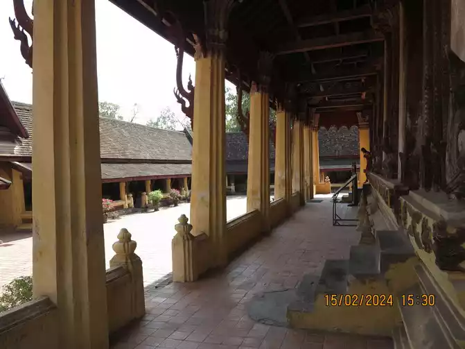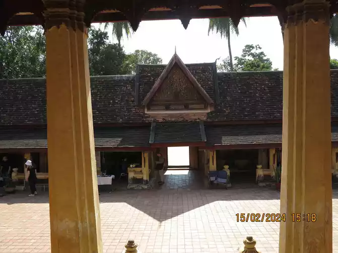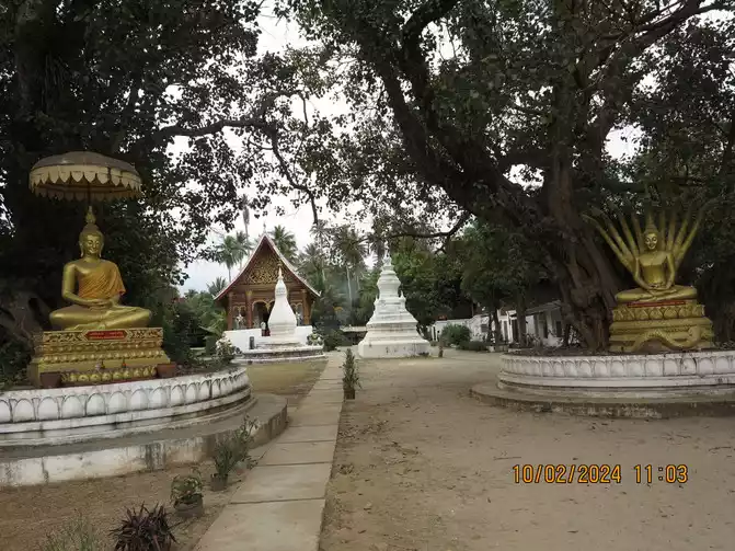 Day 8: We slept until dawn. We didn't go to Lao Cai to give alms. We had breakfast by the lotus pond and had dinner booked there that evening. The restaurant was called MANDA de LAOS, which specializes in Laotian and French fusion cuisine. The lotus pond here is a UNESCO World Heritage Site. A closer look reveals its beauty, but I feel the standards for this World Heritage site are a bit low compared to those in China. I guess the UN needs to strike a balance. Having breakfast by the pond was quite pleasant. The hotel is primarily populated by European and American tourists, focusing on leisure and vacation. After dinner, we wandered around, starting with Wisunarat Temple, the oldest temple in the area.