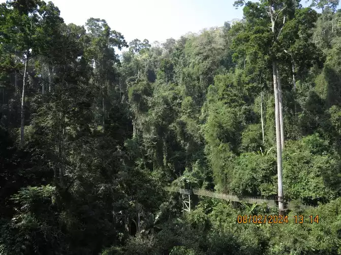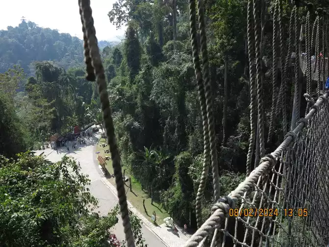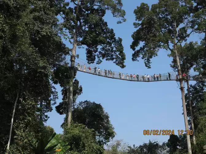Day 6: We left the botanical garden early in the morning. We got a taxi without any problems and headed directly to Wangtianshu (Wangtianshu), a somewhat remote area, so we left our luggage at the service center. To enter the scenic area, take a boat first and walk along the Nanla River. The 4.3-kilometer waterway has nice scenery. The Nanla River is the last tributary of the Lancang River in China. The boat stopped at the rainforest pier. There were all kinds of barbecued food on the shore. You could eat first and then go sightseeing. We hiked into the scenic area, strolled through the various plants, and enjoyed some miracle fruit ice cream. Not far away was the canopy walkway, adjacent to the Linnaeus Laboratory. My wife overcame her fear of heights, so we joined the tree walk. The canopy walkway was fantastic. Amidst the dense, pristine rainforest, densely populated trees—parashorea chinensis, an iconic species representing Southeast Asia's tropical rainforests—tended to rise from their towering trunks, reaching 70 to 100 meters tall. A 36-meter-high canopy walkway snaked through the air. Originally used for scientific expeditions, this walkway has been visited by countless scientists from around the world.