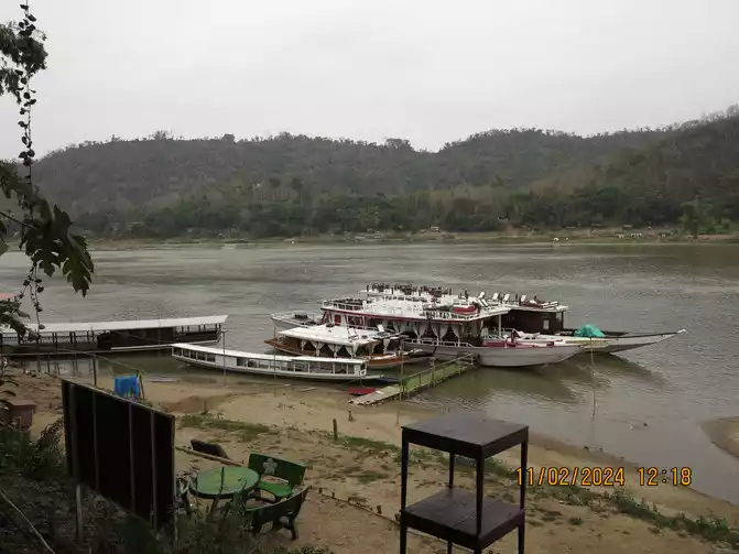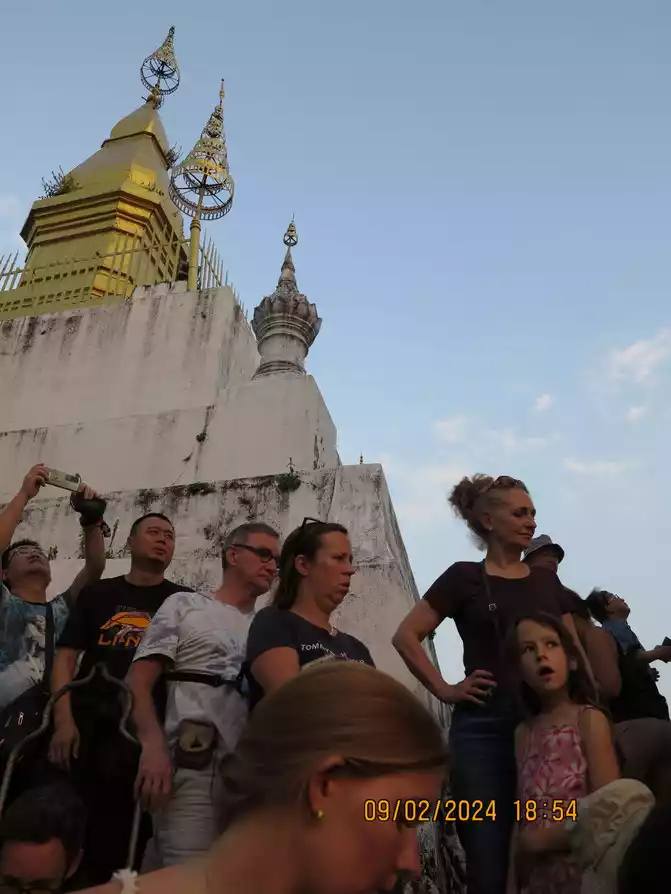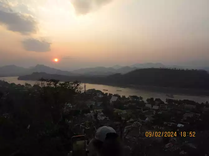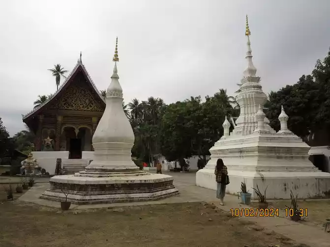 Day 4: The weather was great. The most important thing to do this morning was to buy train tickets from Boten to Luang Prabang. I grabbed them right on time at 7:30 Beijing time. They were much easier to get than the domestic trains. Having the tickets in hand gave me peace of mind. We first went to the nearby Wat Ongyi to watch the sunrise. There weren't many tourists, so it was quiet and beautiful.