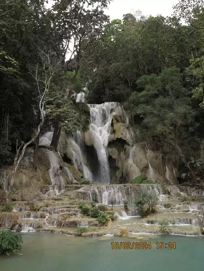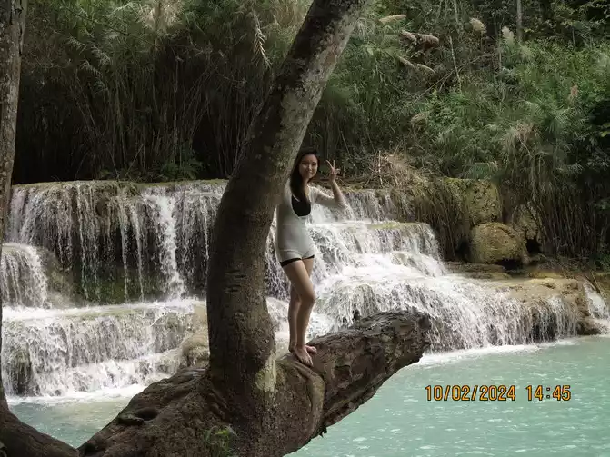 Walking all the way back to the hotel, we encountered Chinese-speaking travel agencies whose quotes were extremely inflated, so we simply ignored them. Upon arriving at the hotel, we spoke with the front desk and learned that a van tour of Kuang Si Falls, with the return trip to see elephants and drink buffalo milk, would cost around $50 for 5-6 hours. A tuk-tuk would cost 800,000 kip. We decided to try the tuk-tuk tour and planned to leave at noon the next day to visit the falls.