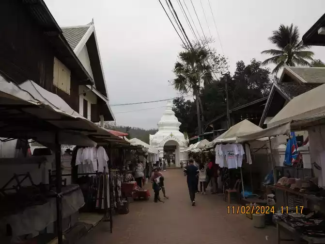 We continued hiking all the way, and my wife went to experience a Laos massage. I took my mother and baby to find a cafe to rest for a while, walked all the way, and finally took a look at the night market on the Mekong River.