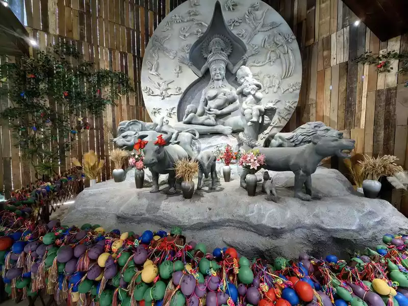 The statue of the god in Aini Village in the Primeval Forest Park.