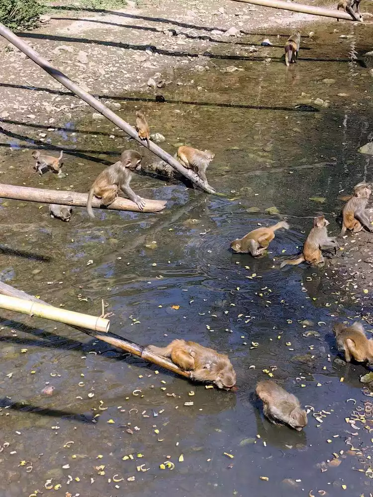 In the middle section of Caiyang River, there is a quiet environment and a group of wild monkeys. The photo was taken in the Primeval Forest Park.
