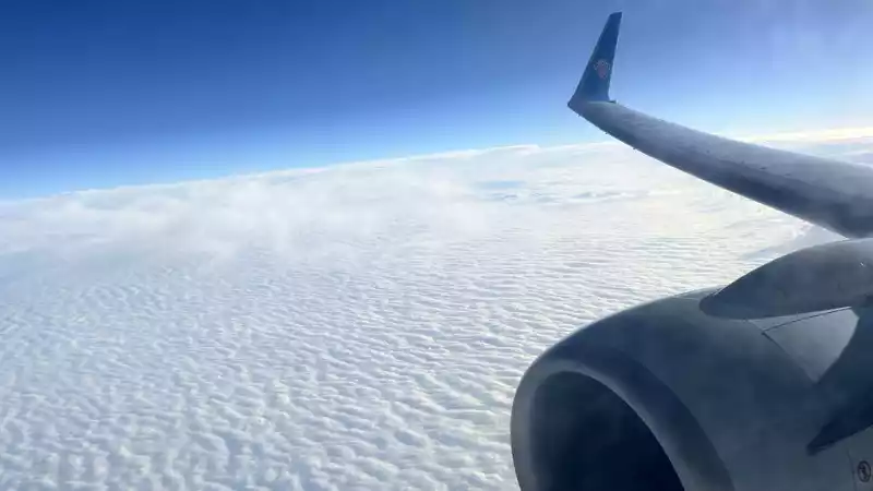 When the plane soared into the sky, I completely got rid of the gloomy weather in the south and saw the blue sky and white clouds!! Wow!! I was healed by the blue sky and white clouds!