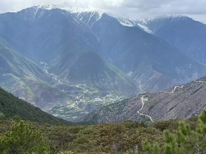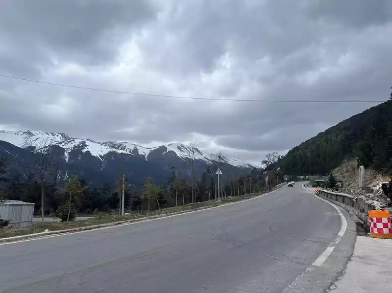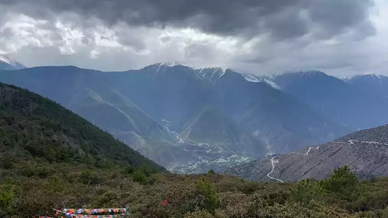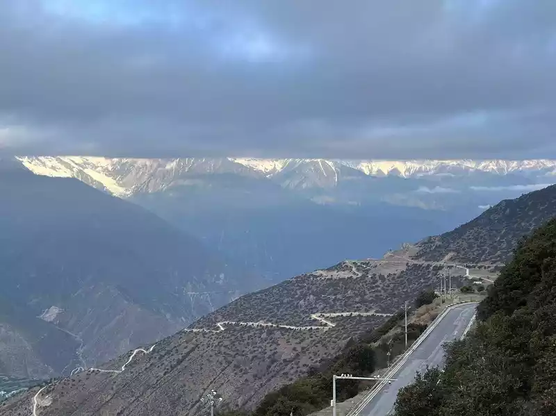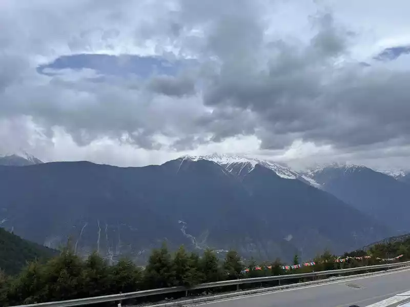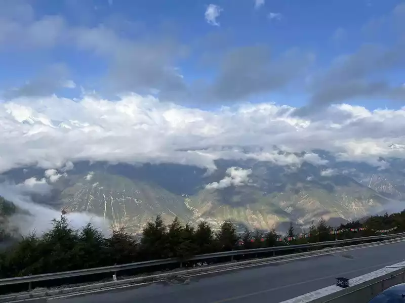 The night before departure, we carpooled to Feilai Temple. This time we wanted to see the sunrise over the Meili Snow Mountain from here. Let me tell you something. After you post a carpool, many people will send you messages asking you to cancel your online order and transfer it directly to them. I suggest that you don't do this. I carpooled until 8 o'clock this morning, but arrived at 8:20. When I got to Shangri-La, they asked me to take another car. Fortunately, it was the front seat, otherwise I probably wouldn't have gotten on the car. It takes 3.5 hours from Shangri-La to Feilai Temple. After driving for an hour, you'll find that it's winding around the mountain. I hate those who overtake on the side, which can easily cause a collision. There were 6 people in the carpool, three of whom went to Feilai Temple and three went to Yubeng. After the car passed the Red Army Memorial Hall, on the right was Ganzi, Sichuan, and then it started to climb up. The scenery on both sides was also good, so I asked the driver to stop and take pictures.