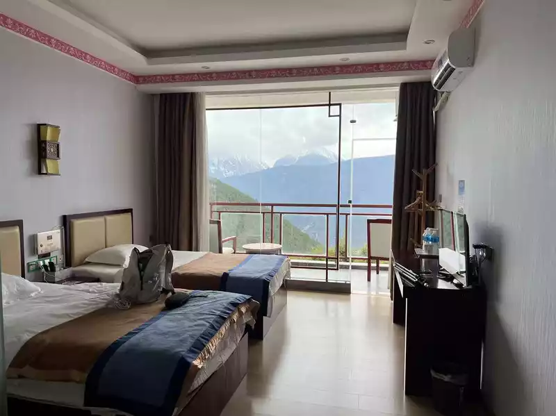 The hotel I stayed in tonight is 420 on the first floor, 450 on the second floor and 650 on the sixth floor. I booked a room on the second floor facing the Meili Snow Mountain view, including breakfast, a simple breakfast, heating, and free oxygen in the room. The price is reasonable. The time is wrong and there is no starry sky at night.