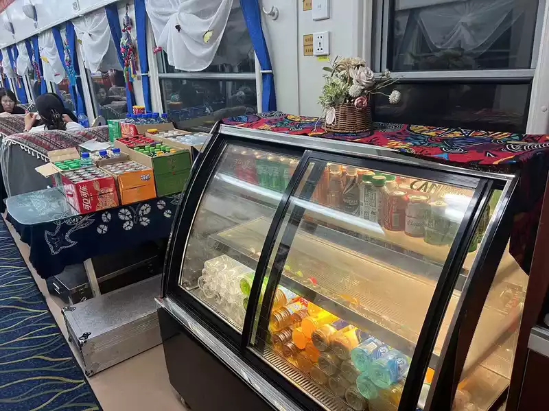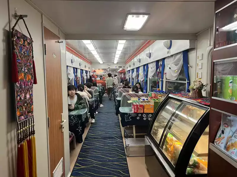 Because I didn't want to go to bed early, I went to the dining car to see if there was anything to eat. The restaurant decoration is nice, and the food is expensive, depending on your consumption level. I ordered a pack of beer and snacks. Beer is 16 yuan, and Budweiser is 18, which is a lot cheaper than bars. I took this train a few years ago. There was a karaoke bar in the last section, but it has been changed now. Has anyone ever taken a train with karaoke and a bar? There are also many people who bring instant noodles to eat in the dining car. When will they change the habit of eating instant noodles?