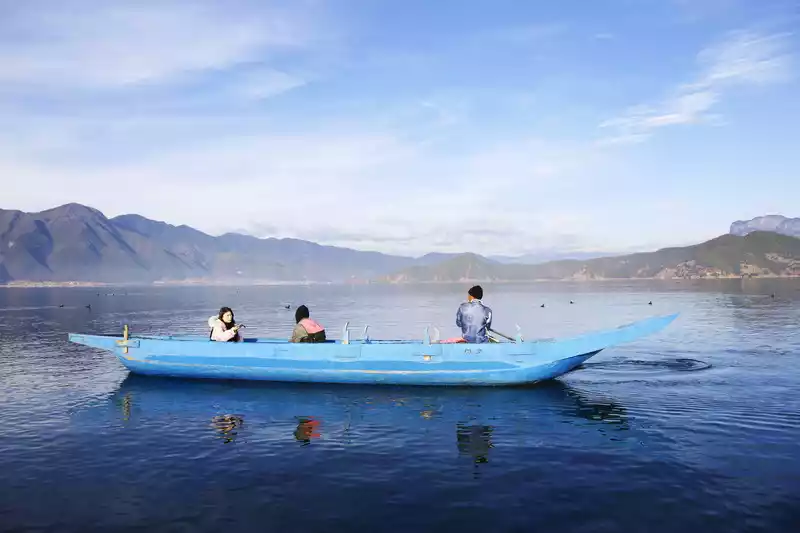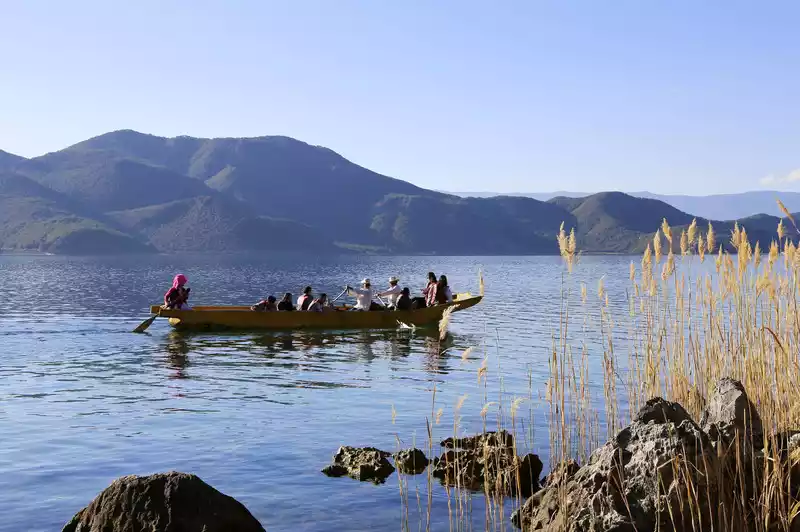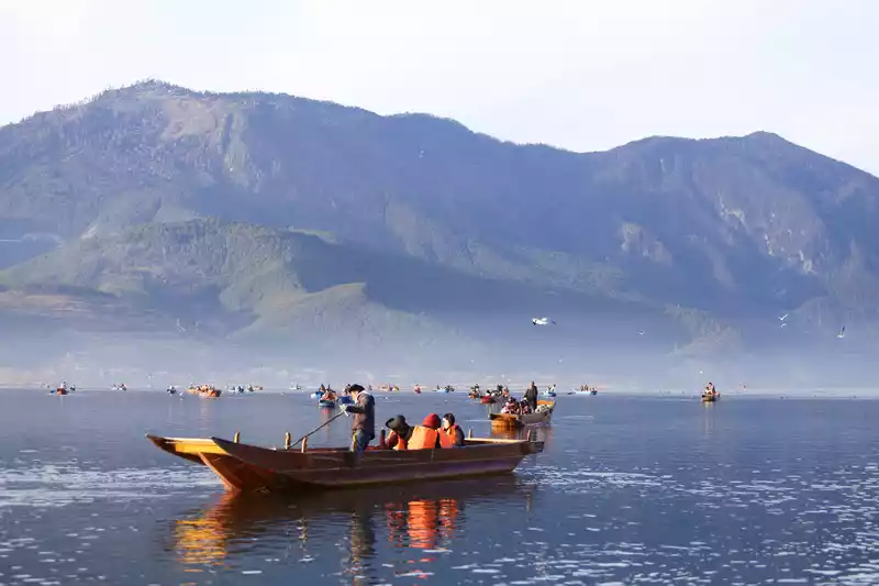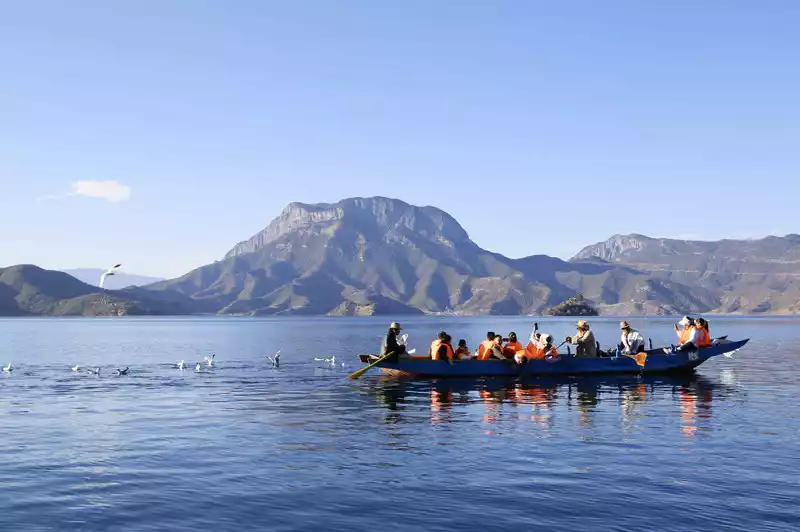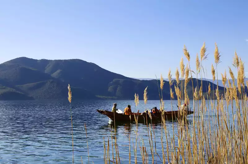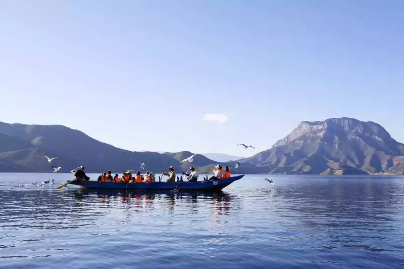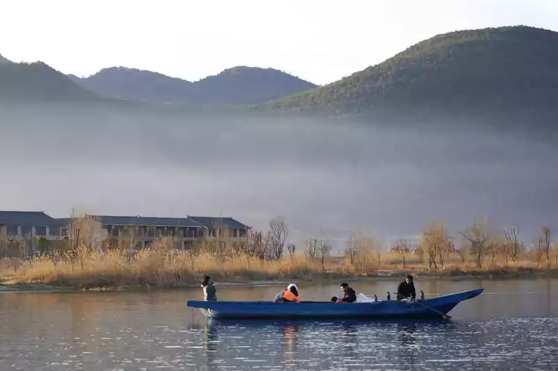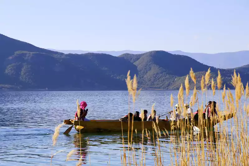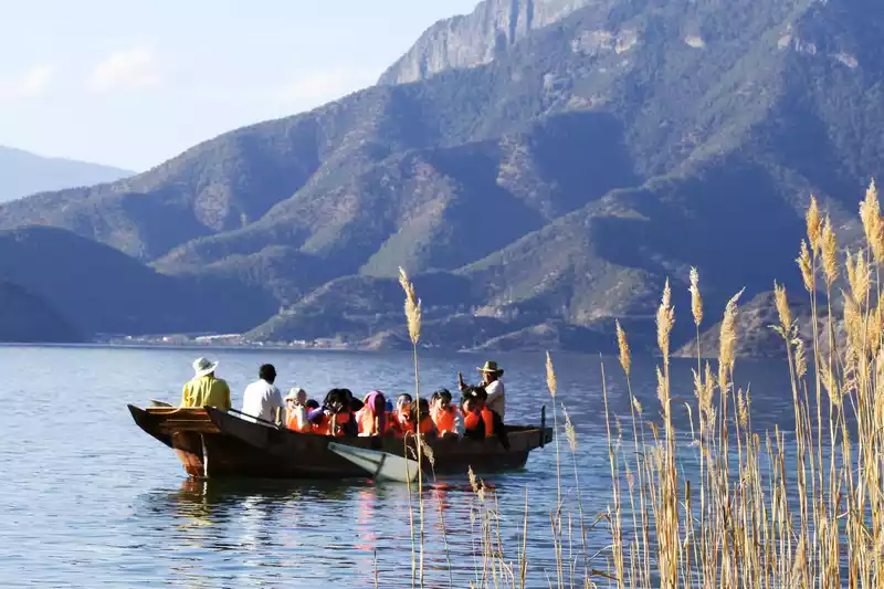 2D Lugu Lake Pier Cruise in the Morning Mist → Walking Marriage Bridge → Caohai Lake → Goddess Bay → Sichuan Lover's Beach → Lige Observation Deck → Yunnan Lover's Beach → Daluoshui Village