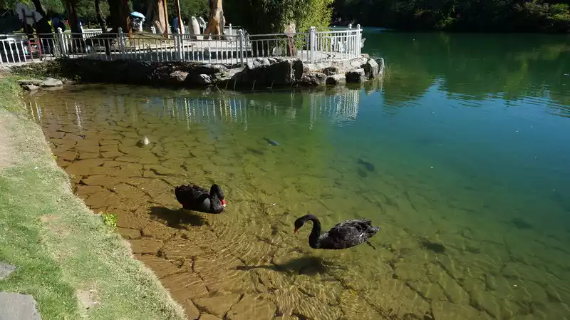 src="/travelogue/China/Yunnan/4137542/56.webp">The water in the pool is emerald blue, surrounded by marble railings. On the marble wall of the Butterfly Spring are inscribed the three characters "Butterfly Spring" written by Guo Moruo.