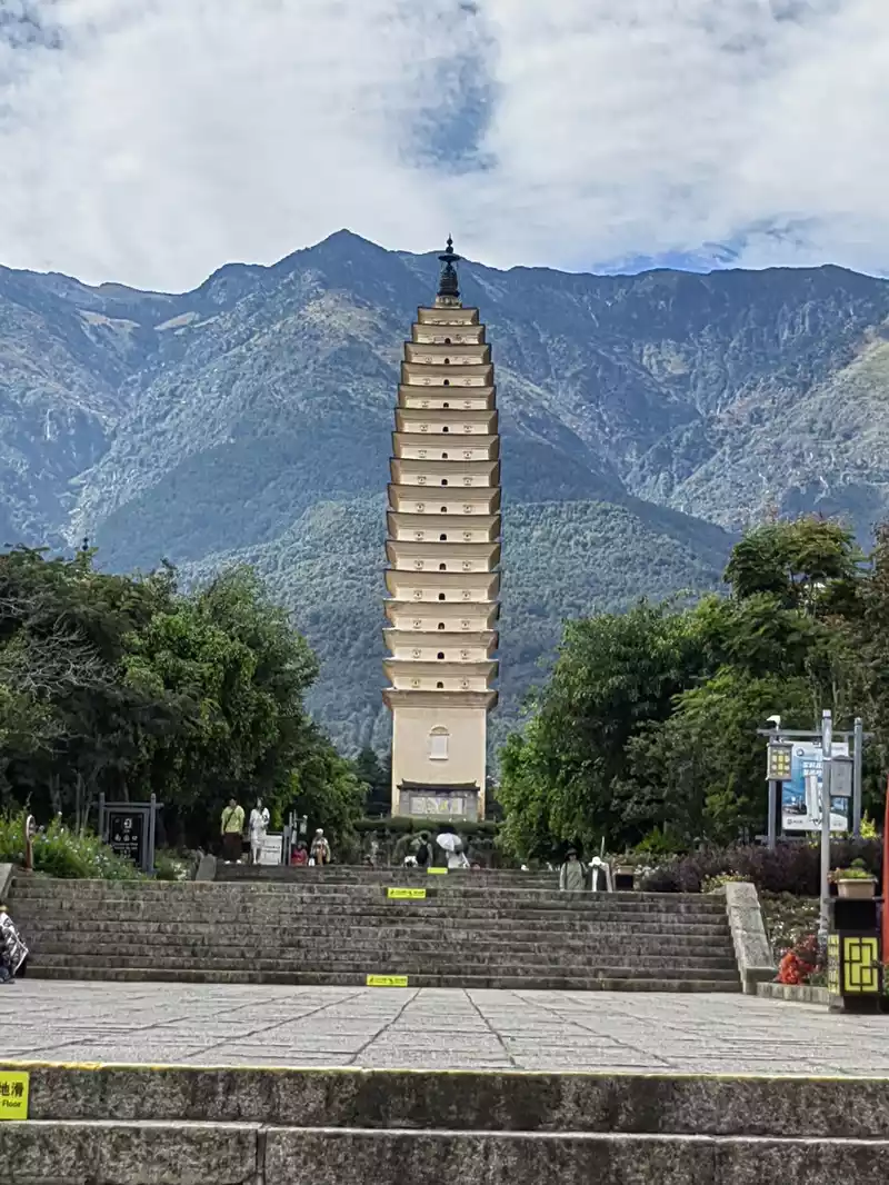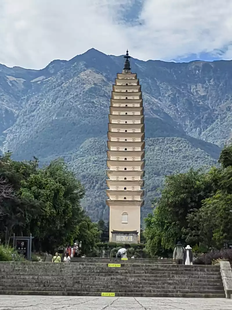 Qianxun Pagoda (Big Pagoda), with Yingle Peak of Cangshan Mountain at its back