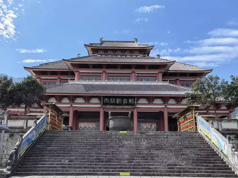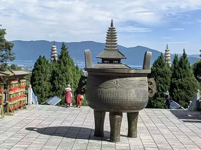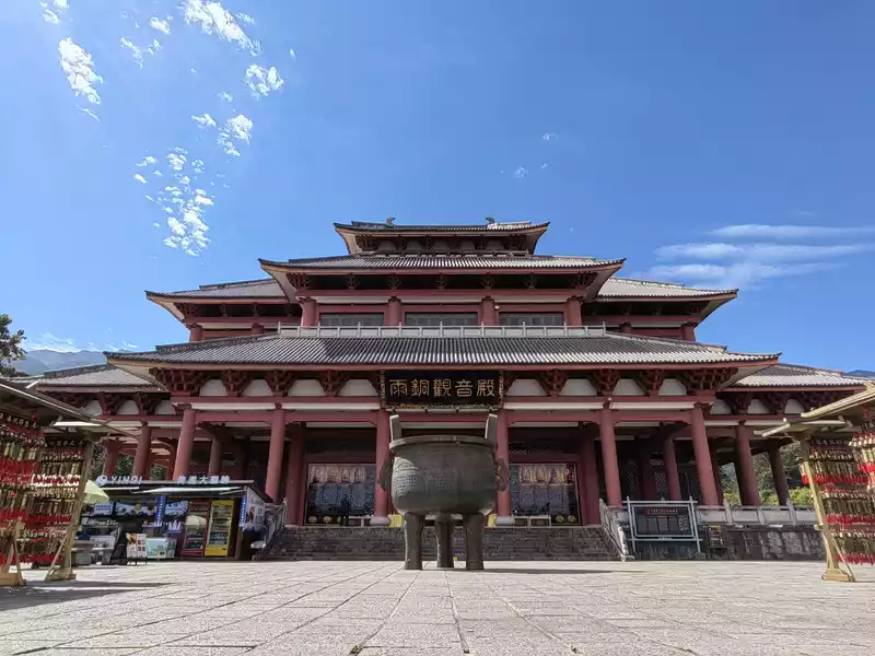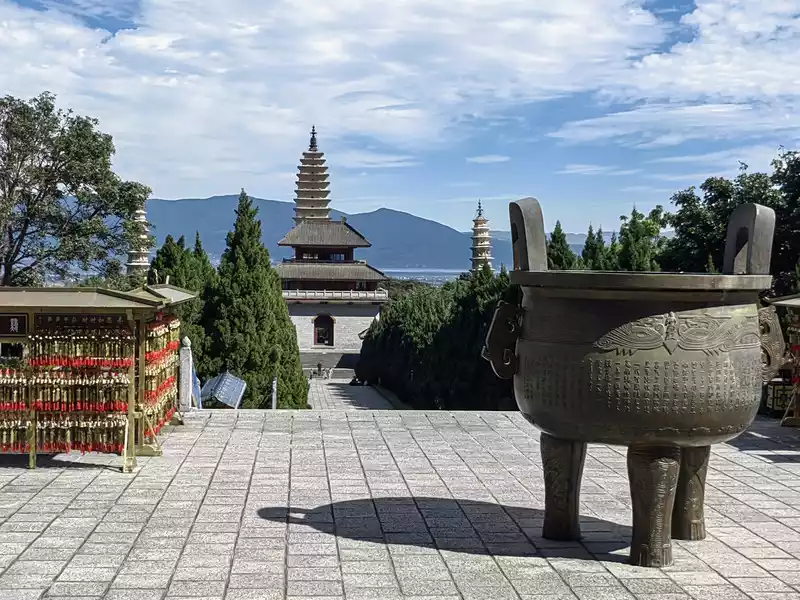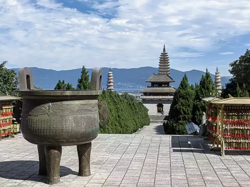 Yutong Guanyin Hall src="/travelogue/China/Yunnan/4137542/56.webp">Yutong Guanyin Hall was originally built in 899 AD, the second year of the Nanzhao Restoration. According to Xu Xiake's Travel Notes, a high monk at Chongsheng Temple vowed to raise funds throughout his life to cast a bronze Guanyin statue to pray for peace and prosperity for the country and the people. "The casting process involved using a mold in three sections. The upper part below the shoulders was cast first, and the copper was already complete. Suddenly, copper rained down like pearls. The crowd scooped up the copper and melted it, forming the head, hence the name." The current building and the Guanyin statue were rebuilt in 1999 for the World Expo.