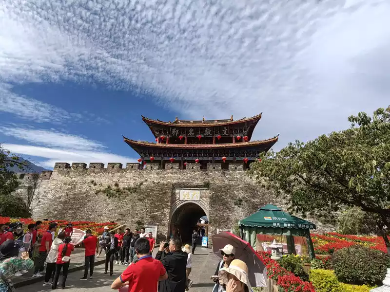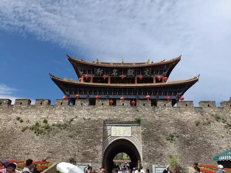 The South City Gate is the first of the four gates of the ancient city. It has a history of more than 600 years. It is the oldest and most magnificent building in the ancient city and is the symbol and landmark of Dali Ancient City. The south tower above the city gate is called Shuanghe Tower, also known as Cheng'en Tower. It was rebuilt in 1984, and the city wall was restored on the site of the original wall in 1998. The architectural style retains the original Ming Dynasty style.