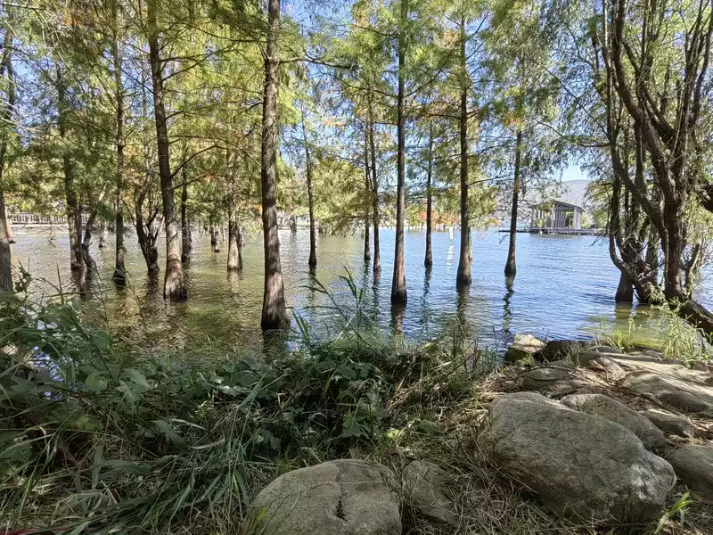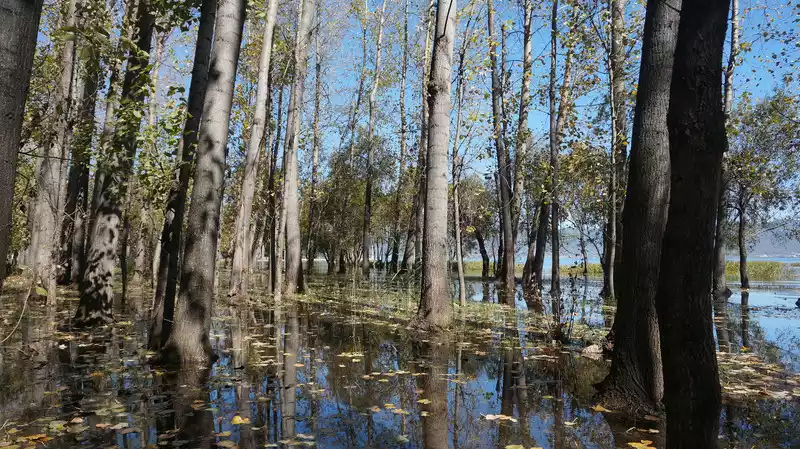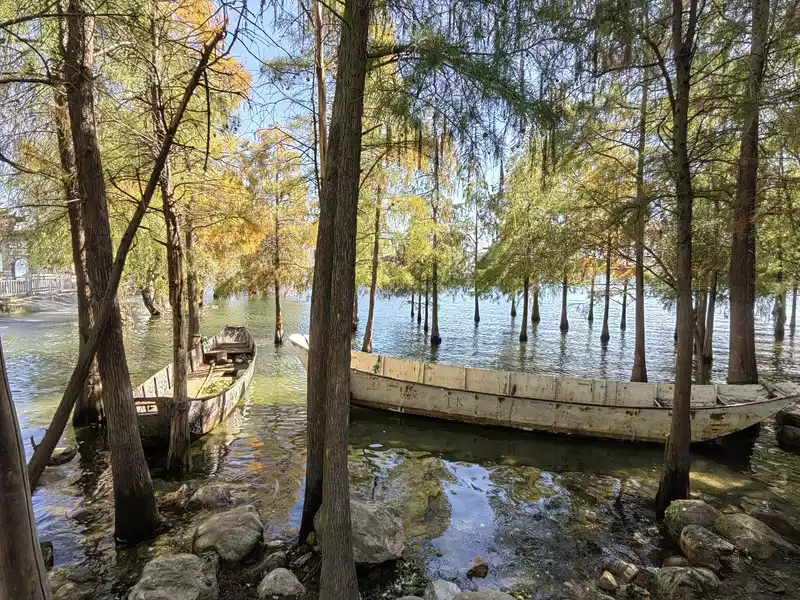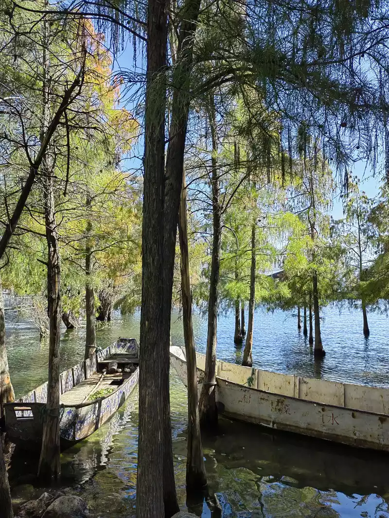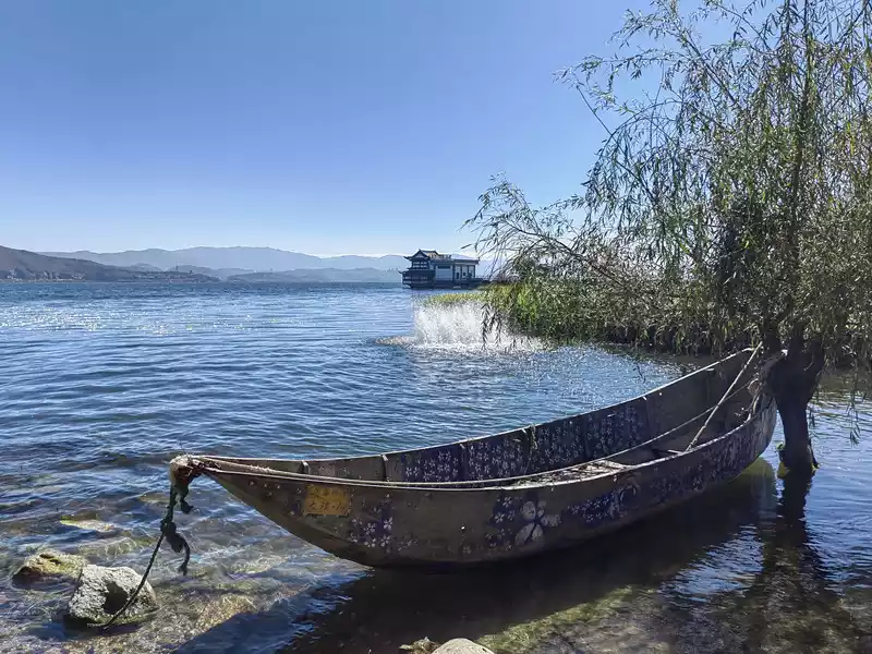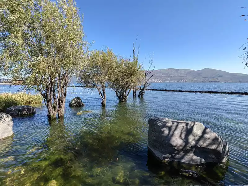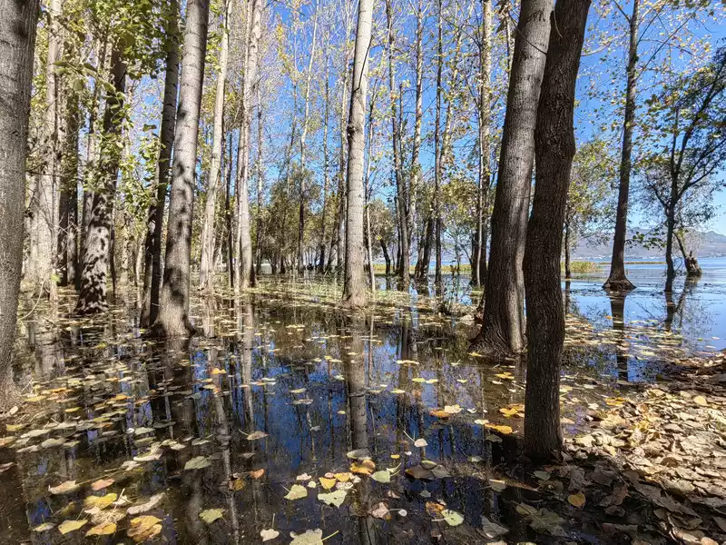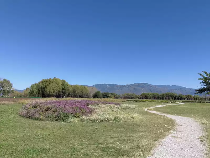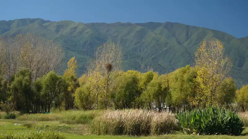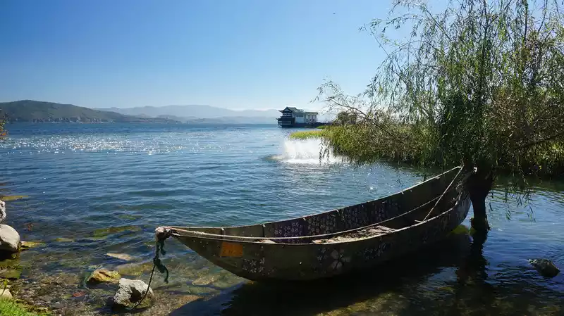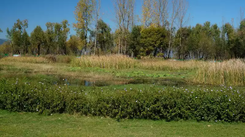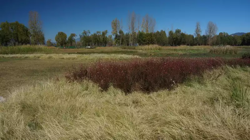 src="/travelogue/China/Yunnan/4137542/56.webp">We walked along the lake for a while and left without entering the village. src="/travelogue/China/Yunnan/4137542/56.webp">Second stop: Haishe Ecological Park src="/travelogue/China/Yunnan/4137542/56.webp">Haishe Ecological Park is located on the west shore of Erhai Lake. It is a narrow peninsula extending into the lake, approximately 3-4 kilometers from Xizhou Ancient Town. The island's scenery is pristine, with large tracts of trees and long wormwood grass. The Erhai Lake here is also exceptionally clear and azure, creating a refreshing and beautiful scene, perfect for photographing. src="/travelogue/China/Yunnan/4137542/56.webp">To reach Haishe Ecological Park, you'll need to pass through Xizhou Ancient Town. Most tourists typically visit both Xizhou Ancient Town and Haishe Ecological Park together, but we'd seen so many ancient villages, towns, and cities in recent days that we were a bit tired, so we skipped Xizhou Ancient Town and went straight to Haishe Park. The public parking lot at Haishe Park is quite far from the park entrance. During peak season, you can take a shuttle bus, but off-season, you'll have to walk. Fortunately, there are large expanses of grass, reeds, and woods along the way, making for a nice view.