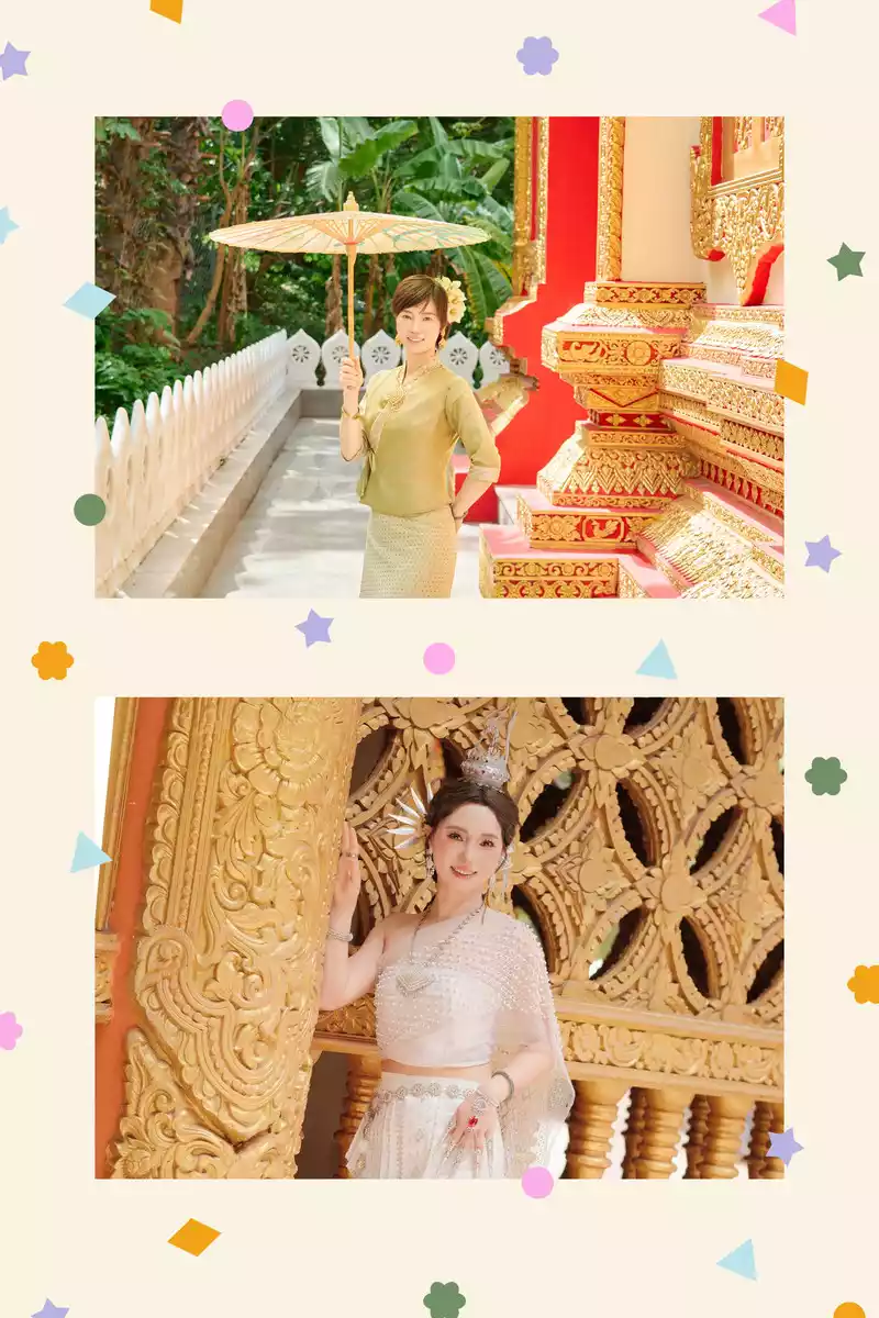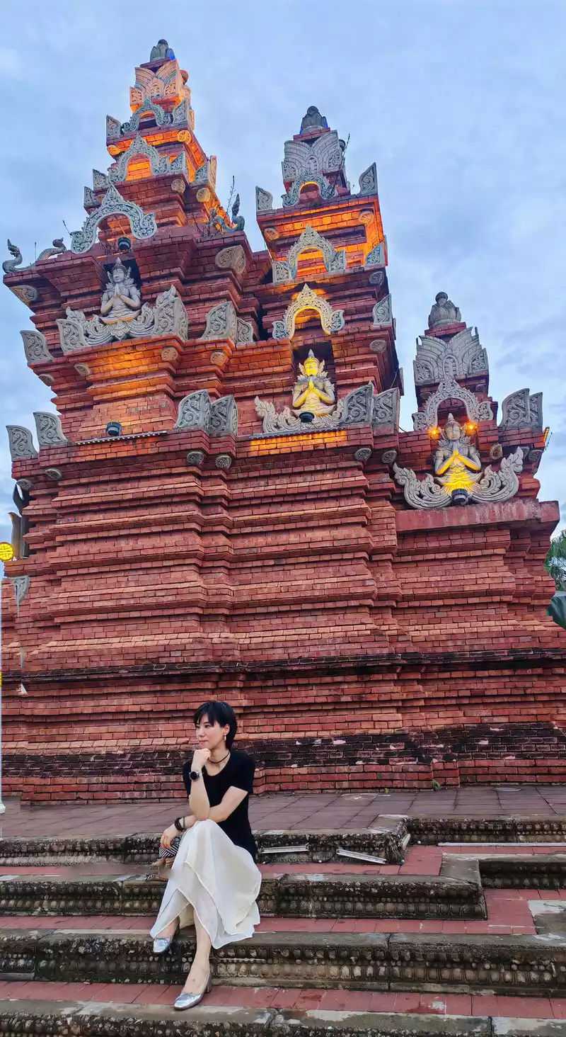 14th Our hotel offered a free travel photoshoot, so we took advantage of it in the morning, as we had nothing else to do. Makeup is a separate fee, and a simple makeup session is 68 yuan, which we opted for. While taking photos, we were able to visit the hotel and the Buddhist temple behind it. It was quite exotic and well worth a morning's visit. In the afternoon, our families each caught their own flights. We look forward to meeting again next time.