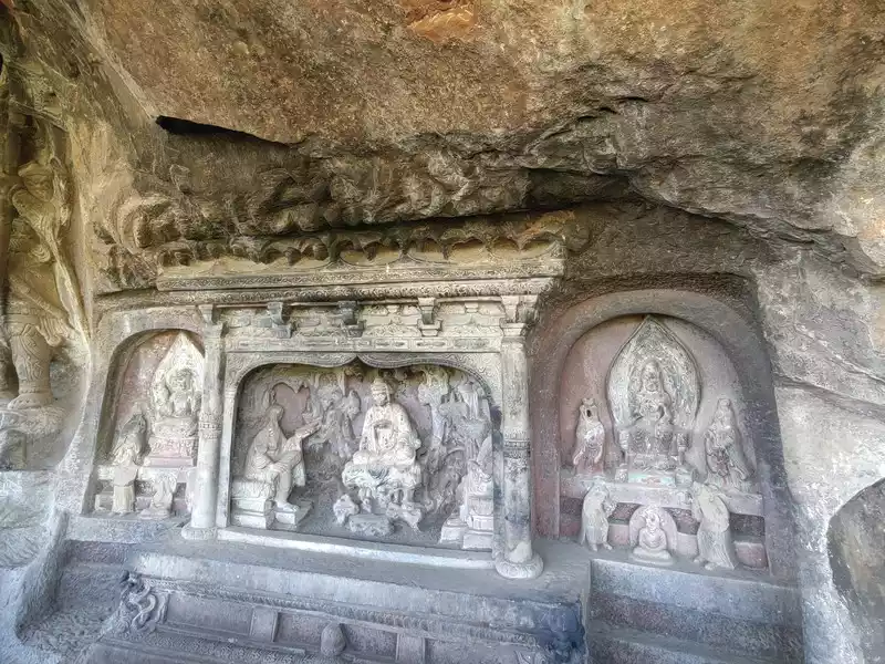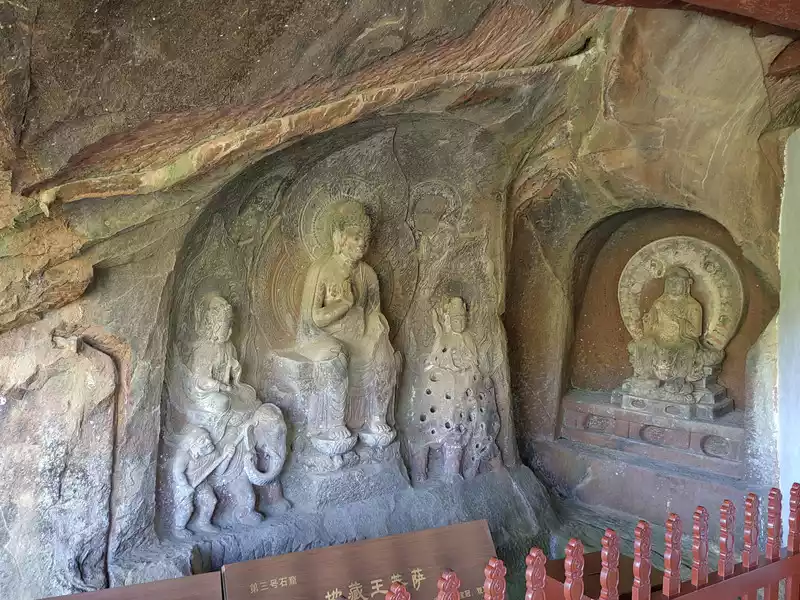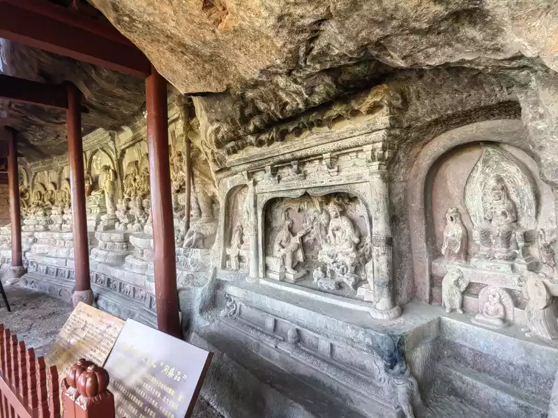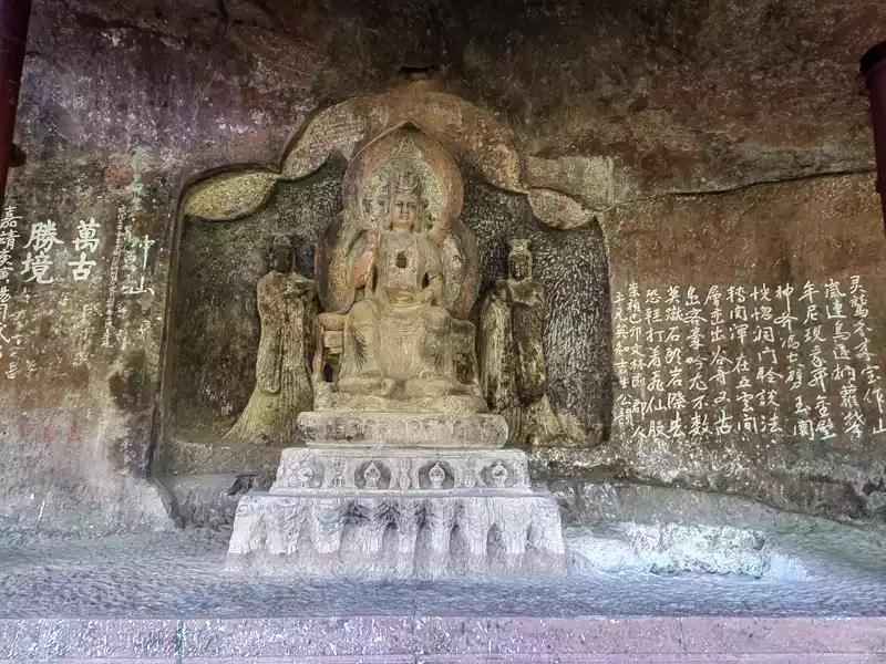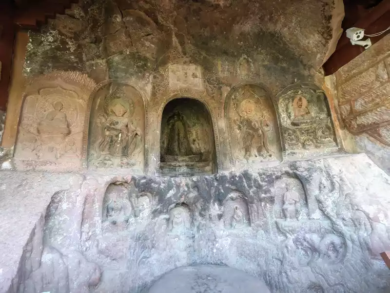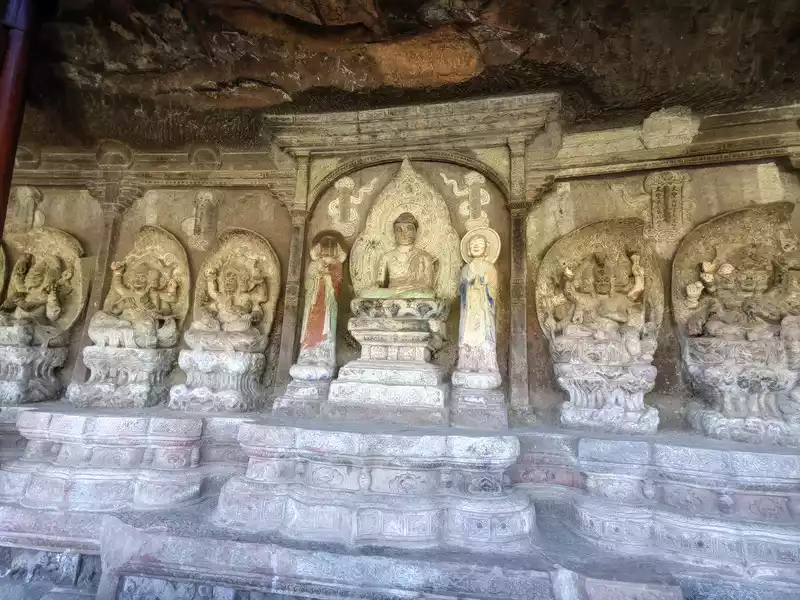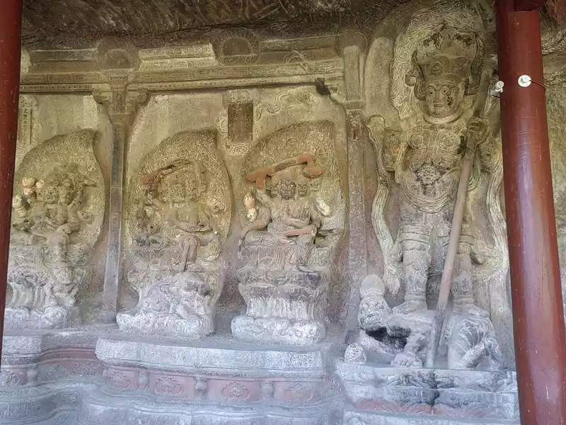 The grottoes are carved into the mountainside and are distributed across three areas: Shizhong Temple, Shiziguan, and Shadengqing. There are eight grottoes in Shizhong Temple, three in Shiziguan, and five in Shadengqing. While Shizhong Temple is accessible by car, the other two areas require walking. If you don't have a special interest or are short on time, it's best to skip them.