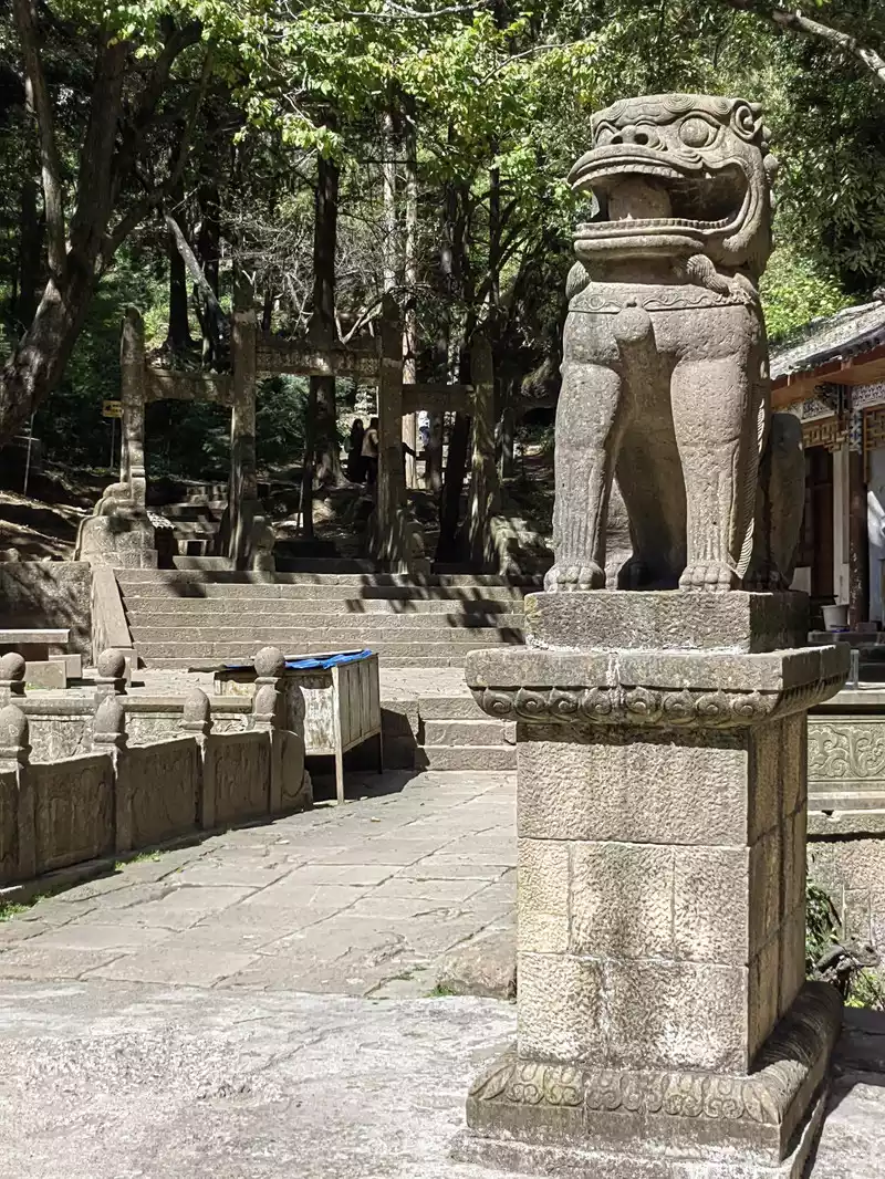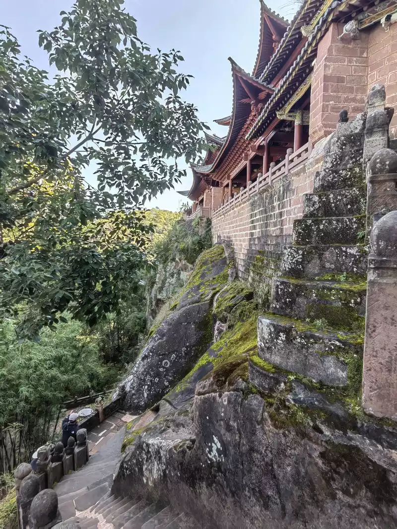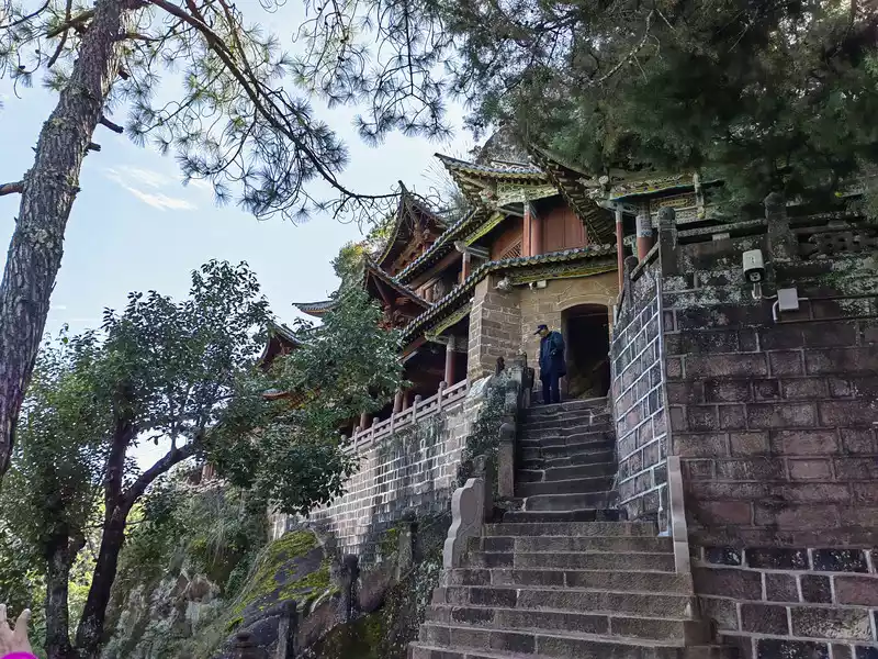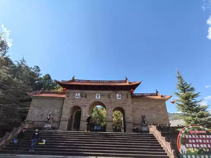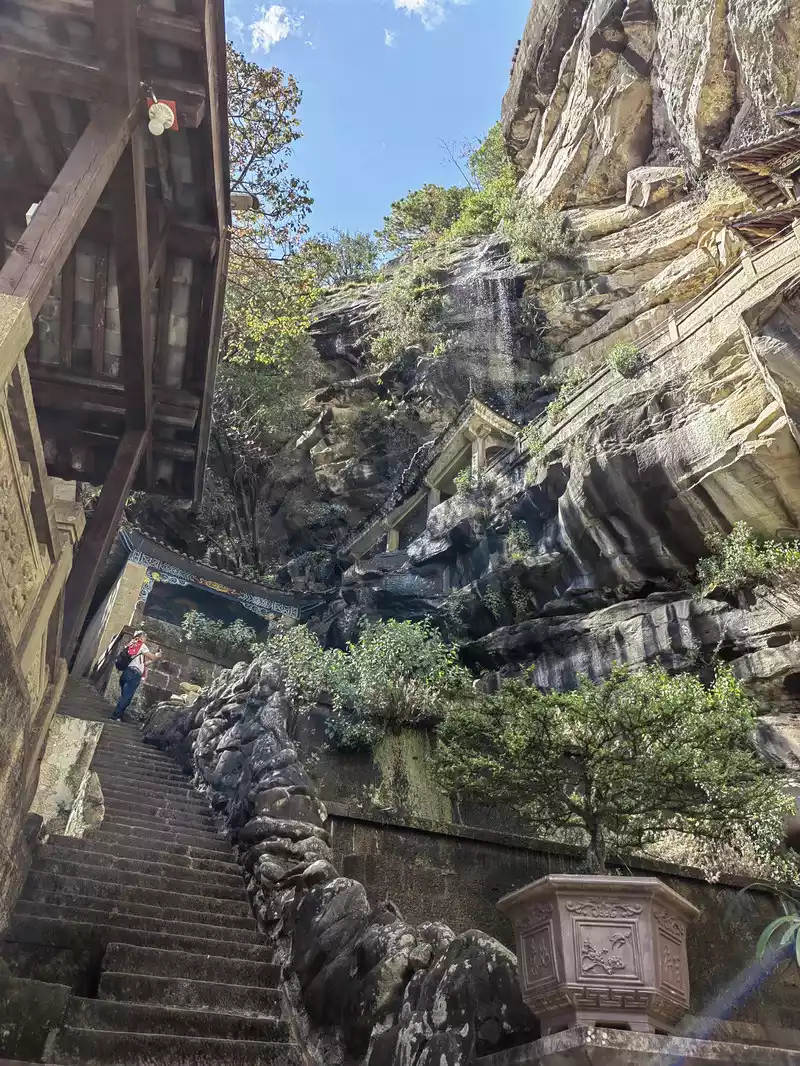 From the Baoxiang Temple Gate to the front gate, you need to climb about 300 to 400 meters of steep steps, which is a bit strenuous.
