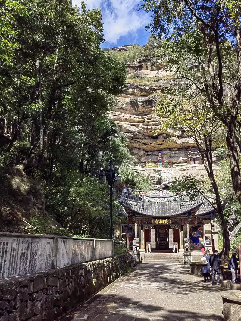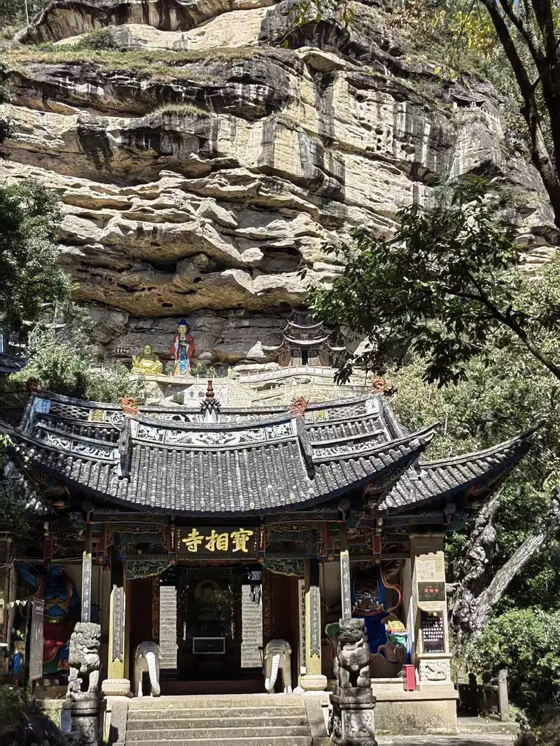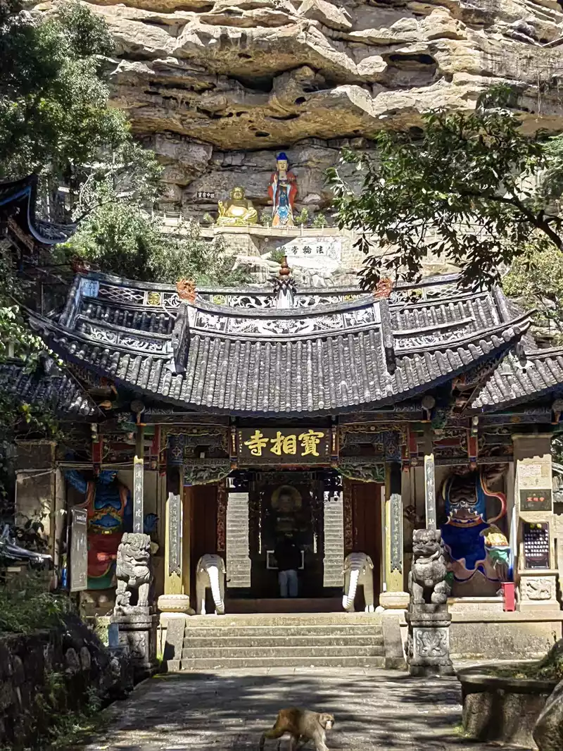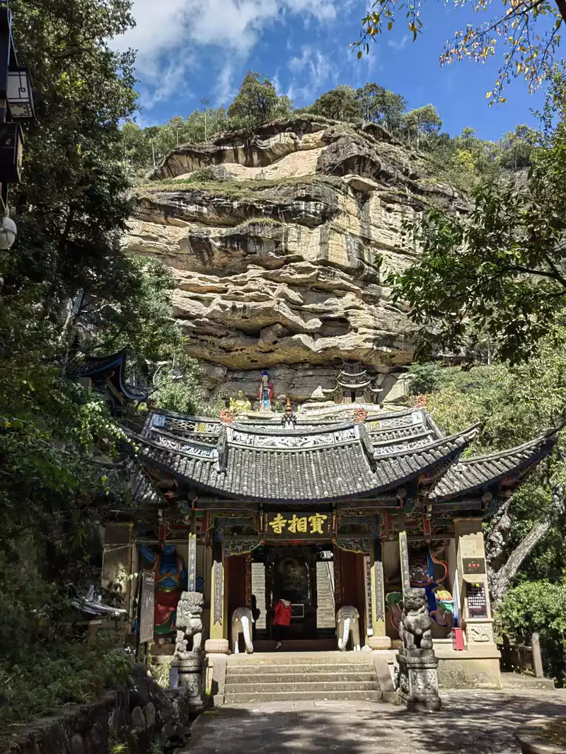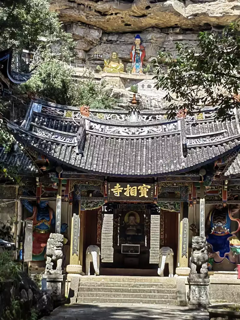 Baoxiang Temple, with its rock-cut grottoes, comprises a gate, main hall, the Hall of Ten Sons and Ten Sisters, east and west wings, gardens, and the Jade Emperor Pavilion. Its architecture is unique and its structure exquisite. Baoxiang Temple also boasts several historically valuable inscriptions and plaques. On November 16, 1993, the Yunnan Provincial People's Government designated it as one of the fourth batch of provincial-level key cultural relics protection sites.