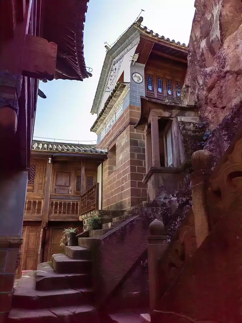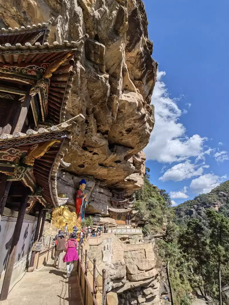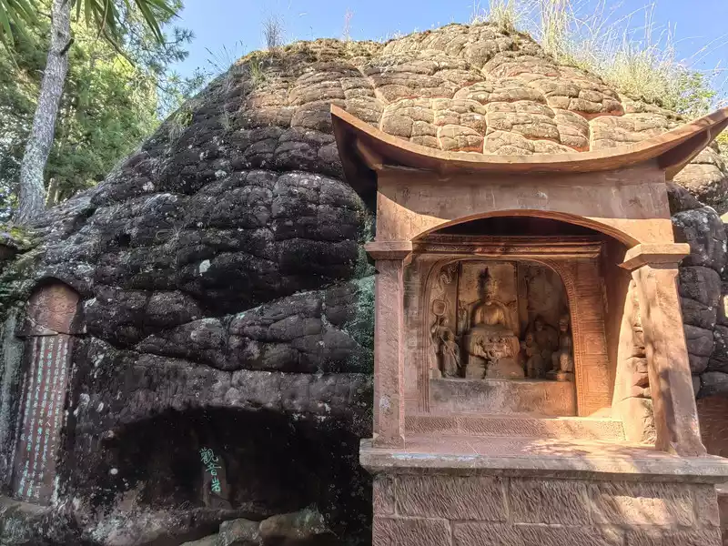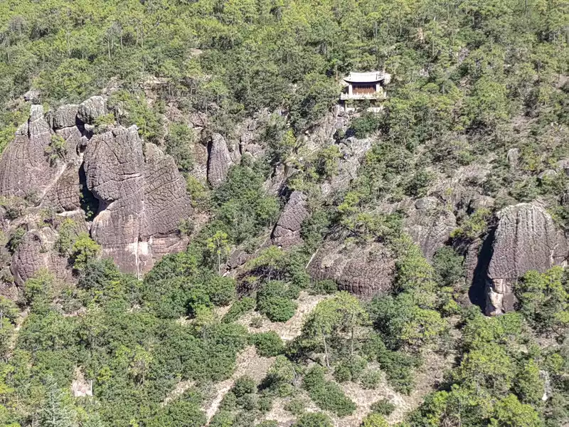 Shibao Mountain is located 25 kilometers southwest of Jianchuan County, and the scenic area's visitor center is only a 15-kilometer drive from Shaxi Ancient Town. Shibao Mountain features Danxia landforms. The weathering of the mountain's red sandstone into tortoise-back cracks has created numerous unusual peaks and rocks, resembling bells, arrows, lions, and elephants. The tallest peaks form cliffs, forming a unique and well-proportioned pattern. Hence the name "Shibao," and it's considered one of China's 44 key scenic spots. The area boasts lush forests, fascinating rock formations, and numerous scenic spots. Relics of Taoist temples built during the Yuan, Ming, and Qing dynasties, such as Baoxiang Temple, Jinding Temple, and Haiyunju, are also found here. The precious Shizhongshan Grottoes and cliff carvings are also worth a visit. The exquisite sculptures, with their distinctive southwestern characteristics, are well worth a visit.
