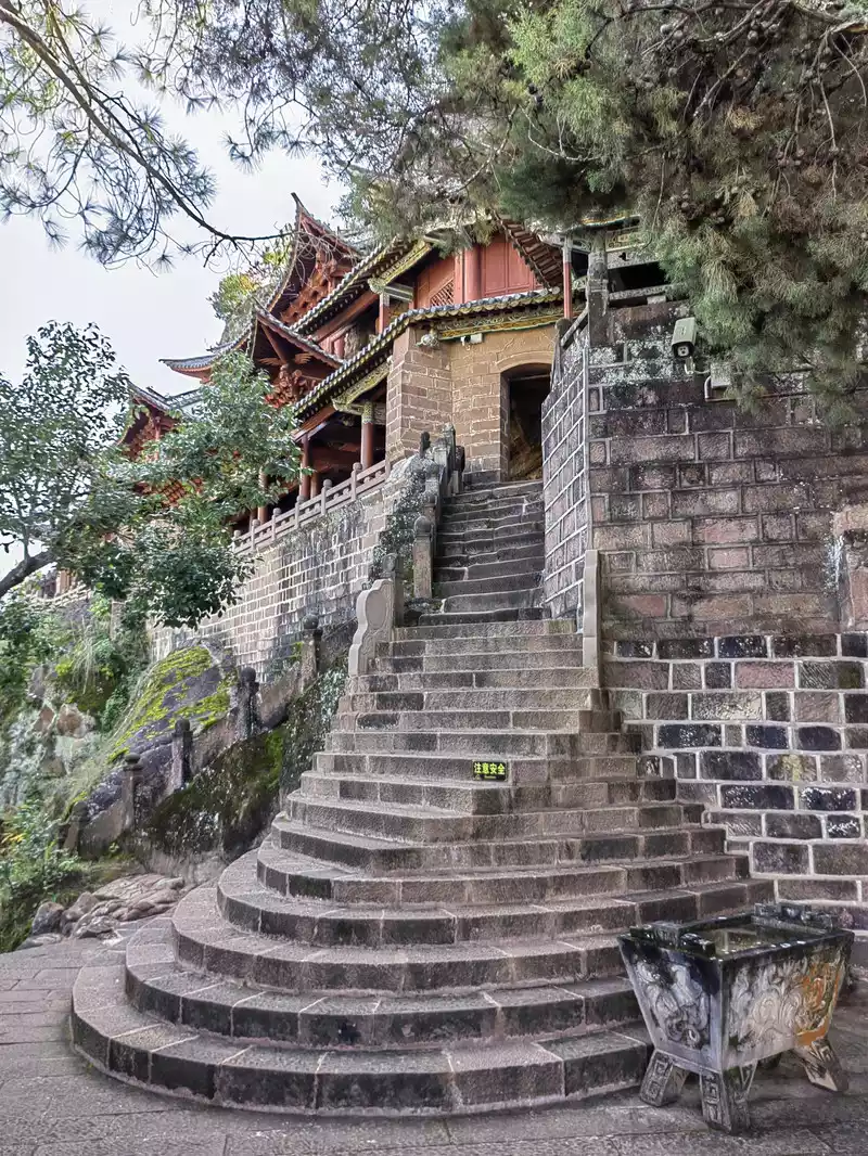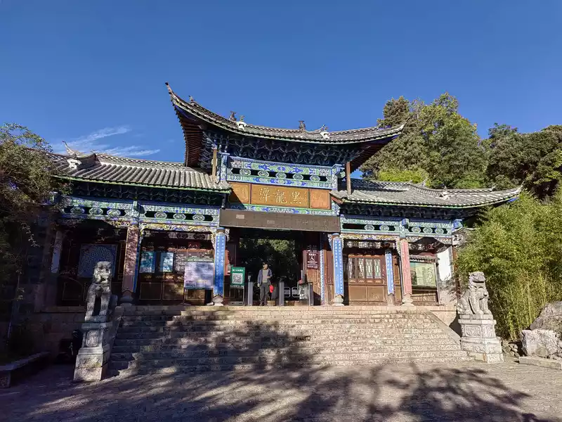 If you continue walking up the mountain from Baoxiang Temple, you'll reach Jinding Temple in about half an hour. We gave up and went straight down the mountain to take a bus back to the visitor center to pick up our car for the trip to Lijiang City.