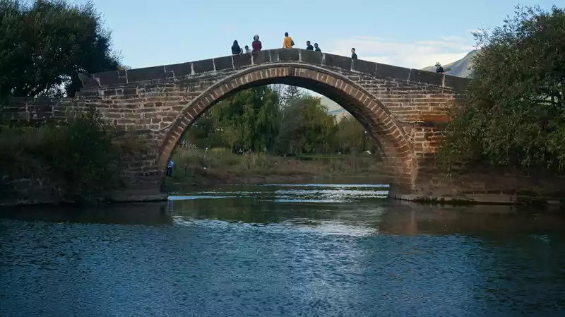 Yujin Bridge is a key transportation hub in Shaxi Ancient Town. It is not only one of the key bridges connecting the Ancient Tea Horse Road to Dali in the south, but also a key channel for local Bai residents to access the fields and conduct commercial activities. It has witnessed the local folk customs and economic development and has become a major tourist attraction. On the arch of the bridge, two turtle heads are carved on the north and south sides, overlooking the upstream and downstream rivers.