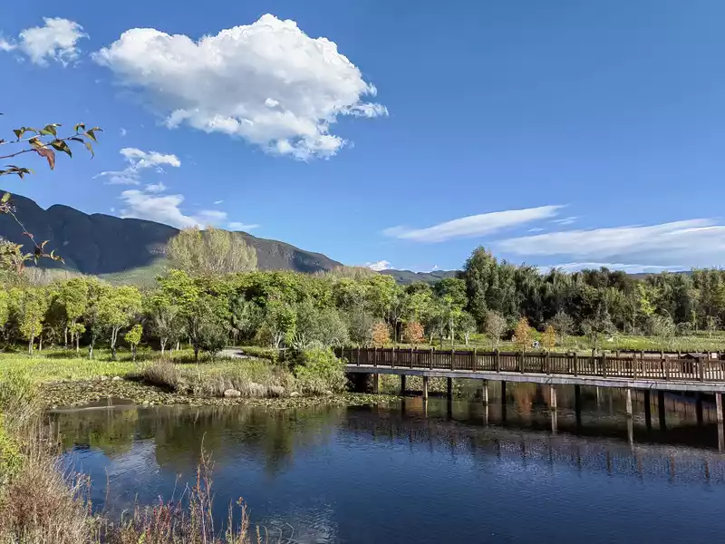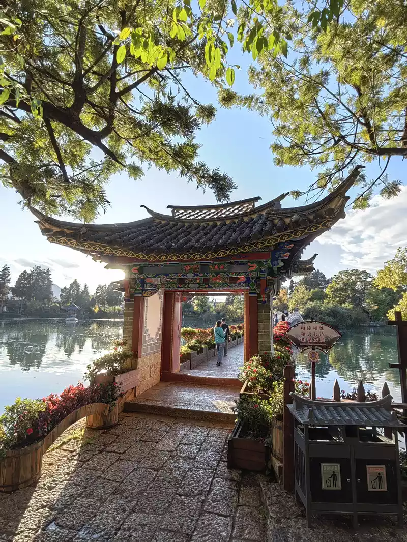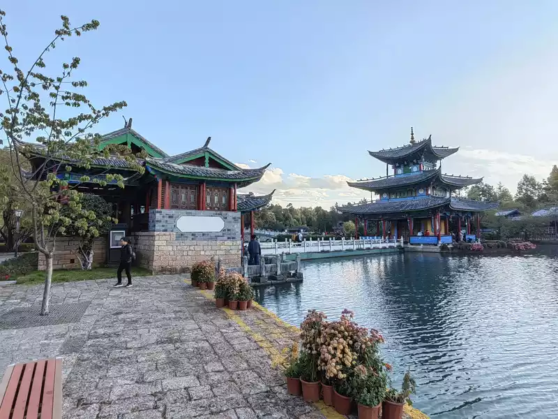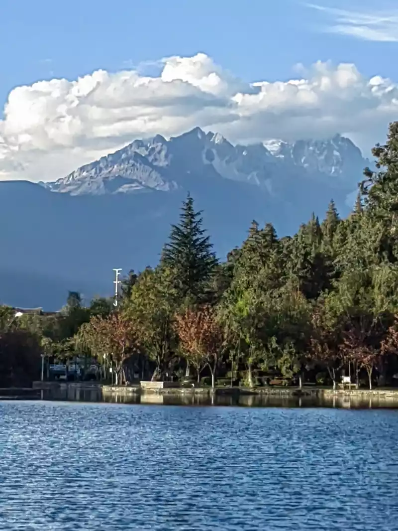 We chose to stay at the Hanting Hotel (Lijiang Ancient Town Airport Bus Station) tonight. Besides its good value, it's also close to Black Dragon Pond Park, which offers the best views of Jade Dragon Snow Mountain, especially in the evening. So, after checking in, we immediately walked to Black Dragon Pond Park.