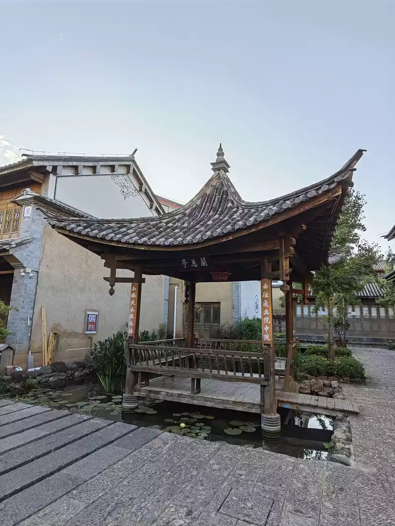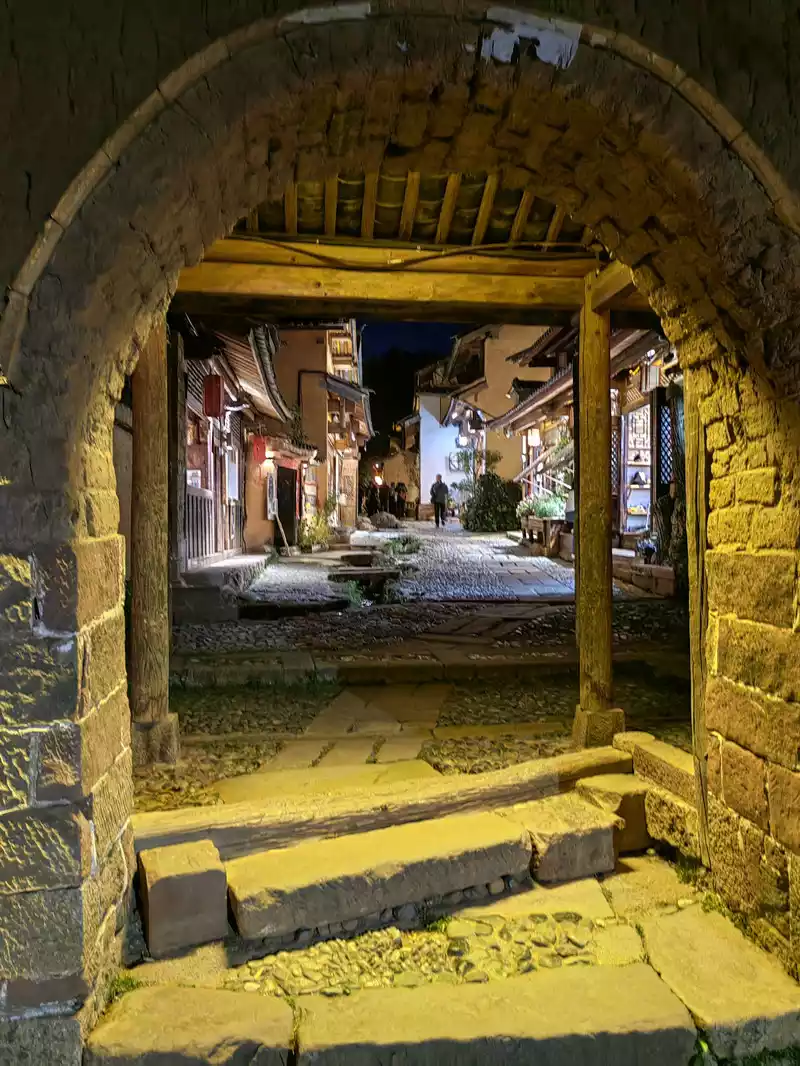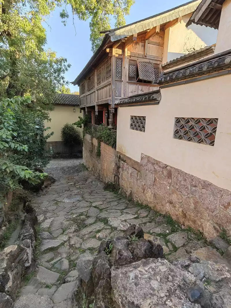 It was already dusk when we arrived in Shaxi Ancient Town, so we stayed at a B&B called "Linqiao Huahai Xiaoyuan" outside the town. There are also accommodations within the town, but they are more expensive and tend to be more crowded. After settling our luggage, we walked to the ancient town.