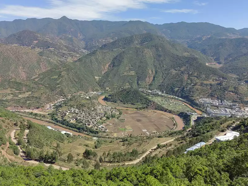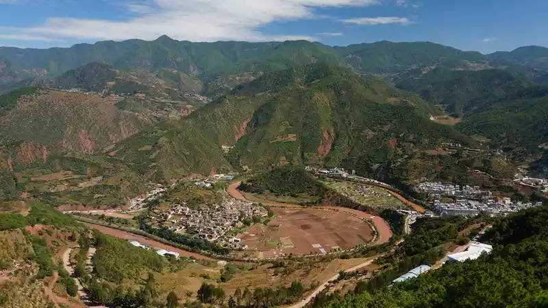 North of Yunlong County, the Bi River carves out a large "S"-shaped bay, creating a natural wonder resembling the Taoist "Tai Chi" pattern (see image above). Within this "natural Tai Chi diagram," the Zhuangping Basin in the north and the Lianjingping Basin in the south form two fish-shaped patterns, reminiscent of the "Yin" and "Yang" elements in the Tai Chi diagram and closely resembling traditional Taoist patterns. This unique landform, formed during the geological development of the Hengduan Mountains, is extremely rare.