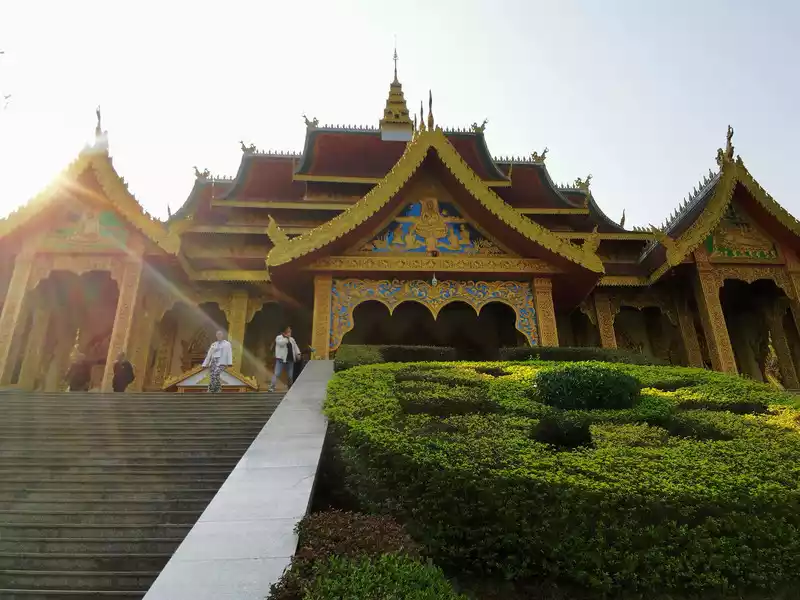 Continue walking forward and passed the Lover's Bridge. I thought it was just a Lover's Bridge, like any other tourist attraction with lots of love locks. But after reading the introduction, I learned that this is the only way for Mosuo men and women to socialize after their thirteenth-year-old coming-of-age ceremony. During the bonfire party, Naxi girls can meet their ideal men and begin dating and marriage. Just then, a Mosuo man carrying a baby passed by. The fusion of past and present made me feel incredibly close to Mosuo culture. I walked to a quiet place covered with shade trees, looked up at the trees and at myself. The squirrels here are much more fearful of people than those near West Lake in Hangzhou, which is how squirrels should behave. Entering Sansheng Temple, it looks like a former tourist attraction, but no one else is going in except me. The colorful pond in front of the gate makes me think it's like Jiuzhaigou, and the passersby behind me echo the same sentiment.