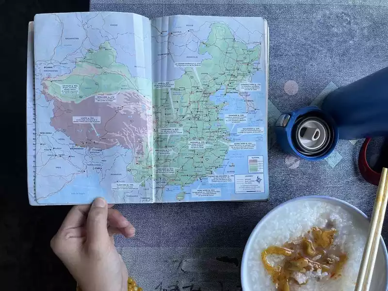 Early in the morning, I had a 15-yuan breakfast set at the restaurant. I was surprised that I could understand the French version of "Lonely Planet." I put on my headphones and continued on my way. When I checked out, I simply said goodbye to the landlady. We might not see each other again. It was truly a wonderful experience, a chance encounter.