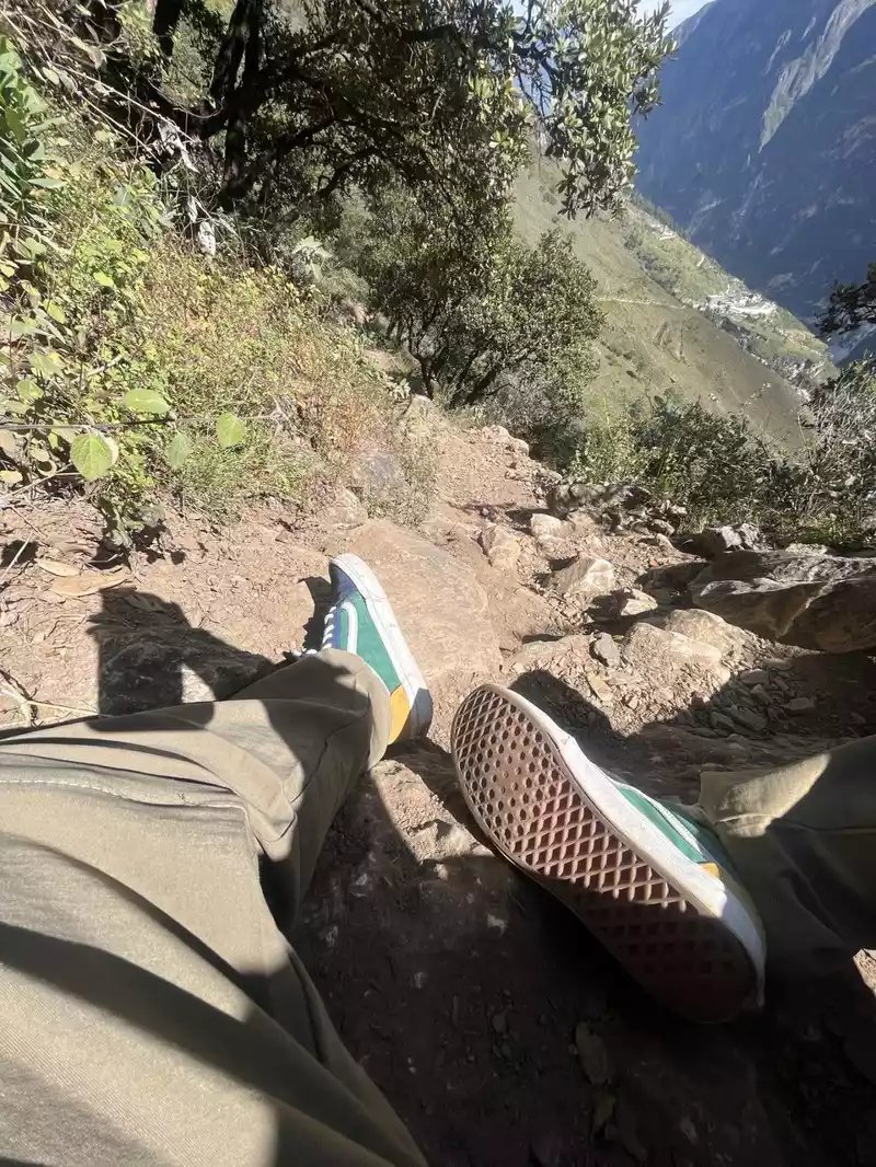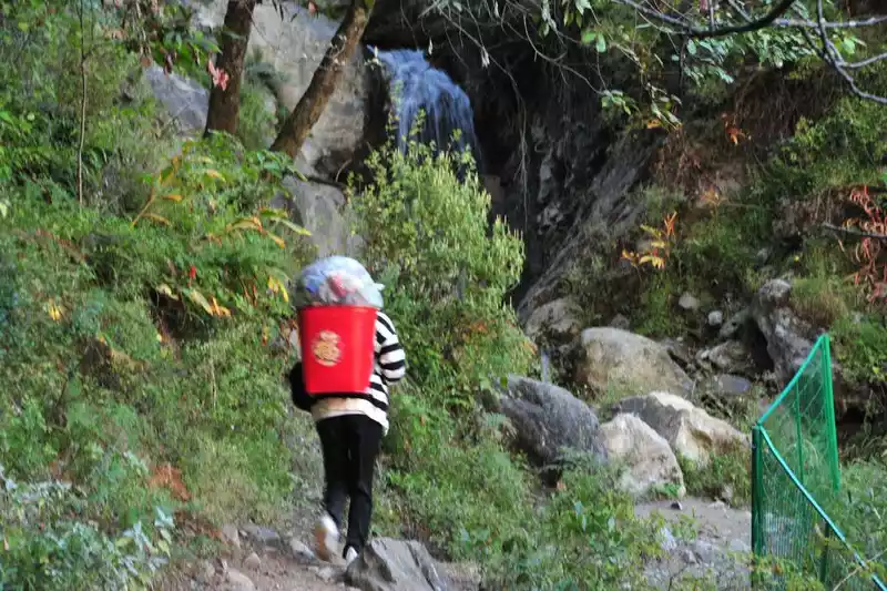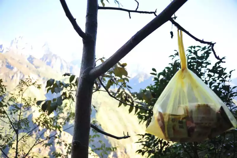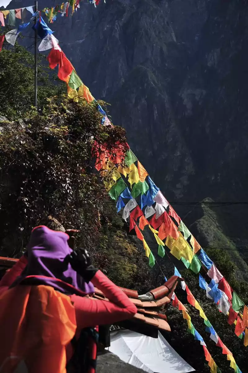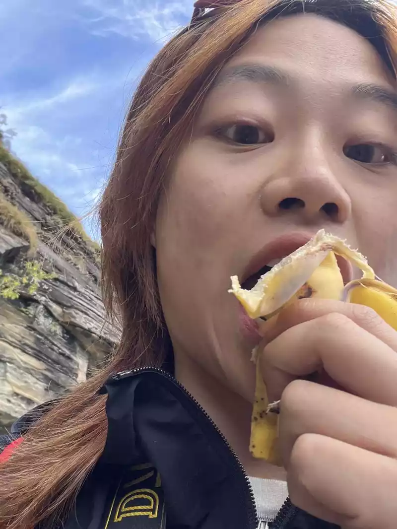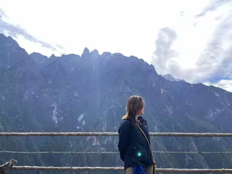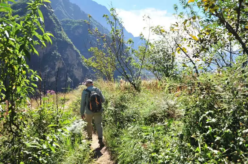 The Tiger Leaping Gorge hiking trails are well-established, with prominent red signs at easy-to-get-out-of-track intersections. The early morning dirt roads, mingling with the scent of animal manure and ripe corn, offer a breath of nature I've never experienced in the city. The first group of people I met on the trail were two dark-skinned young men. At first, I silently competed with them, not wanting to fall behind. At a certain intersection, a man asked me if I was afraid of a woman hiking. My anger flared up again, and I asked what was there to be afraid of, lumping them in with the "men." Then, at another corner, I saw them taking photos. I assumed it was a Jinsha River camera spot only experts could spot, so I approached them for a conversation. I realized they were just waiting for a friend who was calling. They were retired soldiers from Yunnan, and they hiked on their weekends. They asked if I wanted some fresh bananas. I was about to refuse, feeling sorry for my previous stereotypes. But when they offered me the bananas, the fruity fragrance wafted through my lips, and I couldn't resist. This was the first group of kind people I met on the trail.