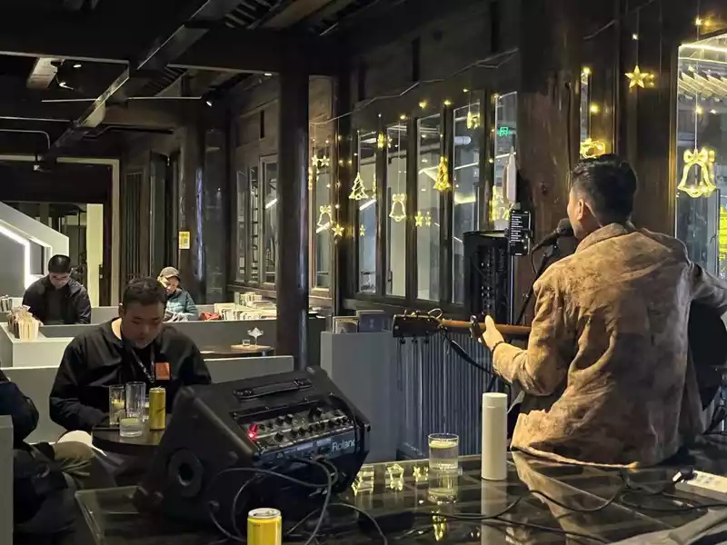 After dinner, we went to Sifang Tingyin for some dancing. Xiaoyu said that this place is mostly populated by outsiders these days, but locals still stay to teach dance. I love dancing in a group to music; even if my limbs aren't coordinated, I still have a lot of fun. Later, the stranger next door couldn't stand it anymore and taught me the movements. After I learned them, I realized how freely my limbs moved in this kind of dance.