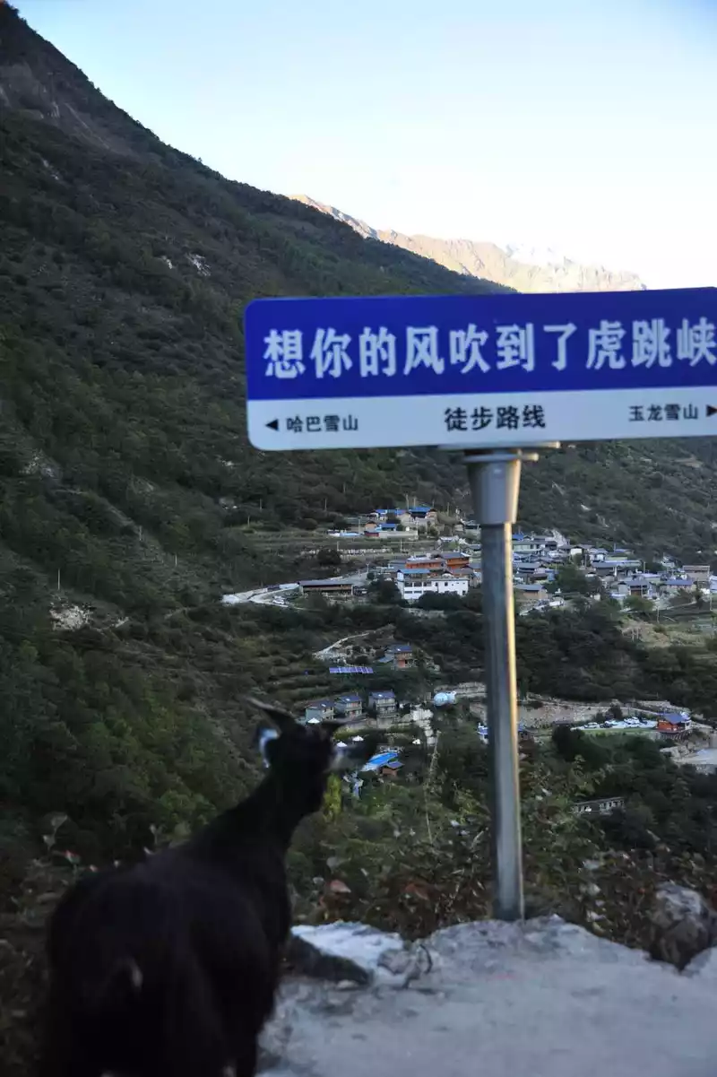 Since this was my first time hiking alone, I asked friends who had done it before what I should pack: a quick-drying vest, a warm base layer, and a jacket. Time was tight, and I forgot I had the right shoes. After checking the guide, I decided to skip the tiring and uphill first half of the Naxi Yage section and instead share a car to Chama. The tea-horse owner said that if we walked in the opposite direction of the hiking route, we could see panoramic views of the Jinsha River and Liangjiaren Village. It was already three o'clock when I left the inn. Sunsets are late in the southwest, but I'm not used to navigation, and I still got lost in the scorching sun. Although it was awkward to enter a private residence, I didn't forget to play with the cats along the roadside. I mustered up the courage to ask the weeding lady how to get to the blue house. She responded enthusiastically in her Northeastern accent.
