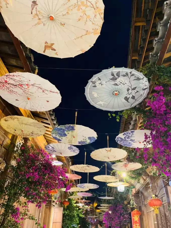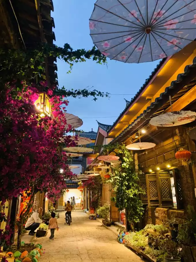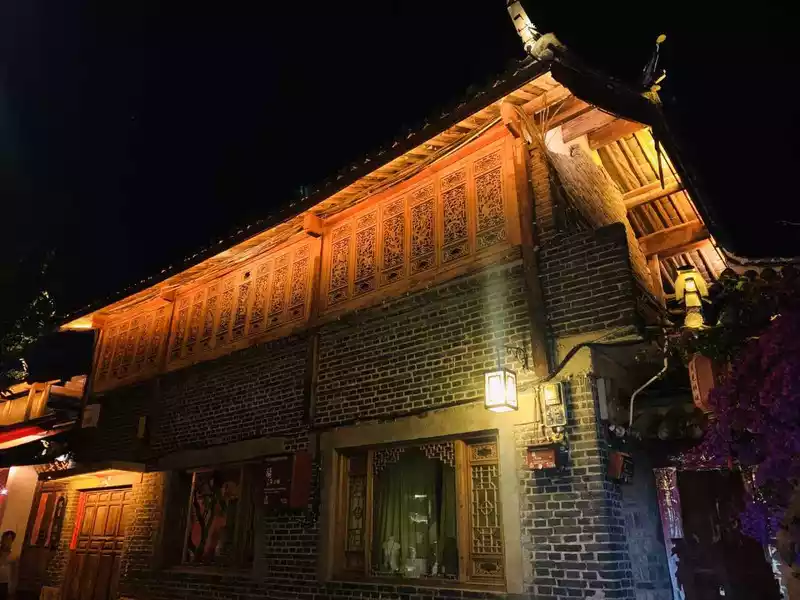Night in the ancient city. Maybe because there are not many people, the lanterns on the streets are not turned on, so the scenery is a bit worse.