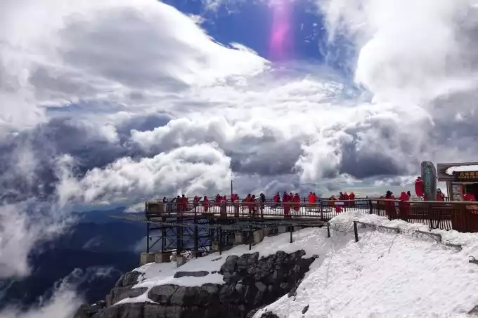We signed up for a one-day tour for 420 yuan per person, which included shuttle service, entrance fees, the cable car, the three mountain treasures, and lunch (chicken hot pot). Once inside the scenic area, you had to buy a ticket for the electric car within the area for 50 yuan per person. It wasn't that far to walk, but the Jade Dragon Snow Mountain cable car is only open a few times a day, so the ride was a bit more time-consuming.
