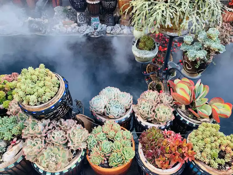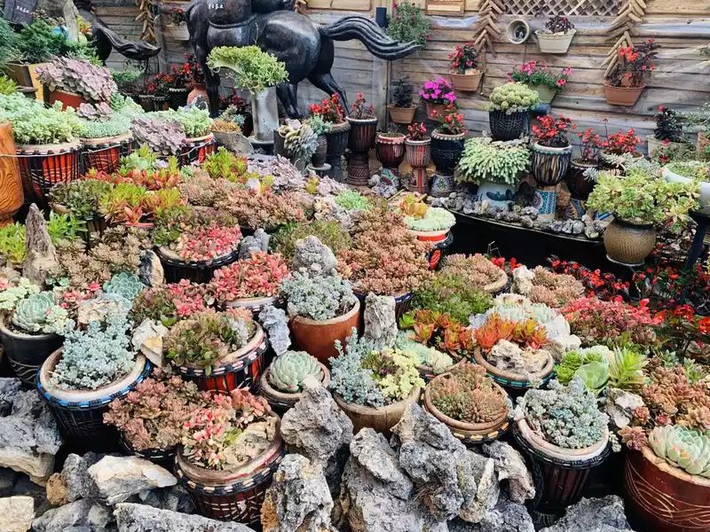 The succulents in front of a very distinctive tea house are suitable for all kinds of posing photos. People often take photos here.