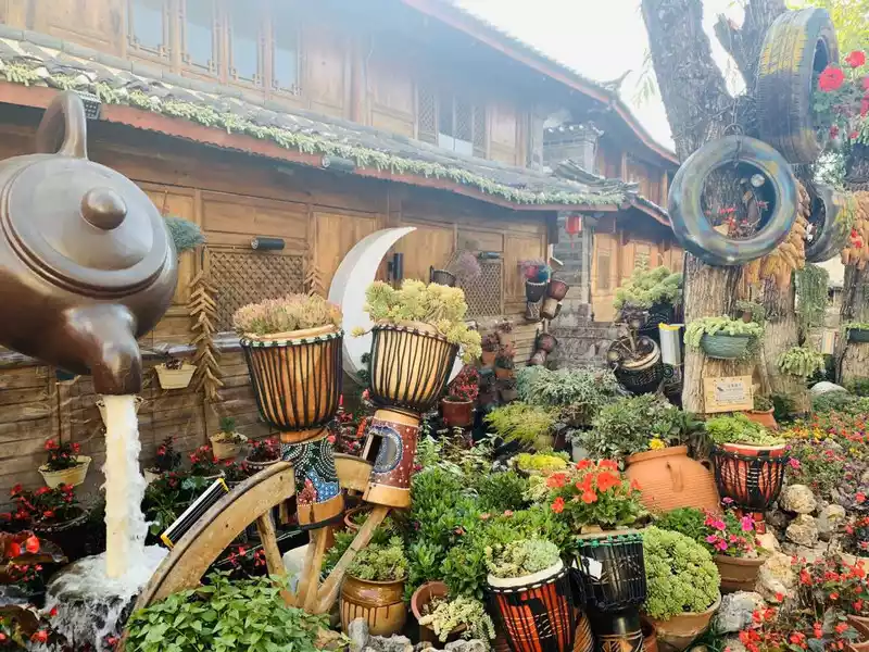 What impressed me most about Shuhe Ancient Town was the food in this garden restaurant!