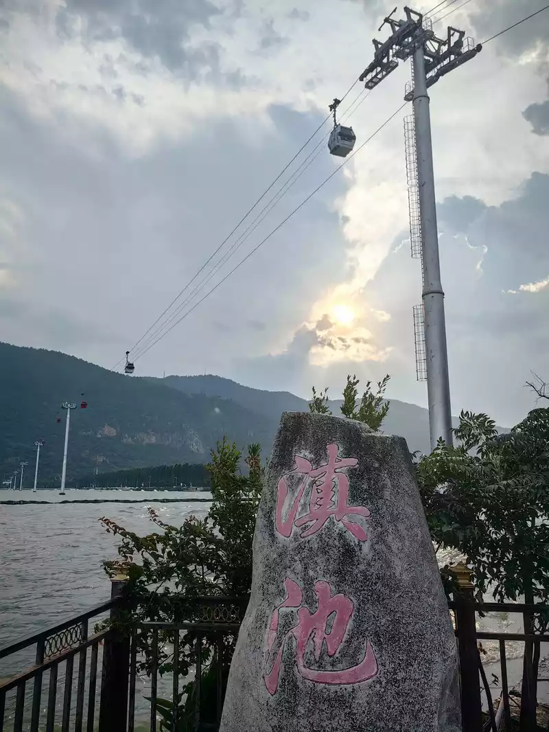 The south and west sides of Haigeng Park face the lake, each featuring a scenic trail along the lake, about one or two kilometers long. The two trails meet at the southwest corner of the park, marking the end of the Xishan Cableway. The starting point is on Xishan Mountain, far across the lake, but I'm afraid of heights, so I didn't have the time. The scenery along the southern route is beautiful, but time constraints prevented me from catching the sunset on the western trail, a regret I'll have to make up for next time.