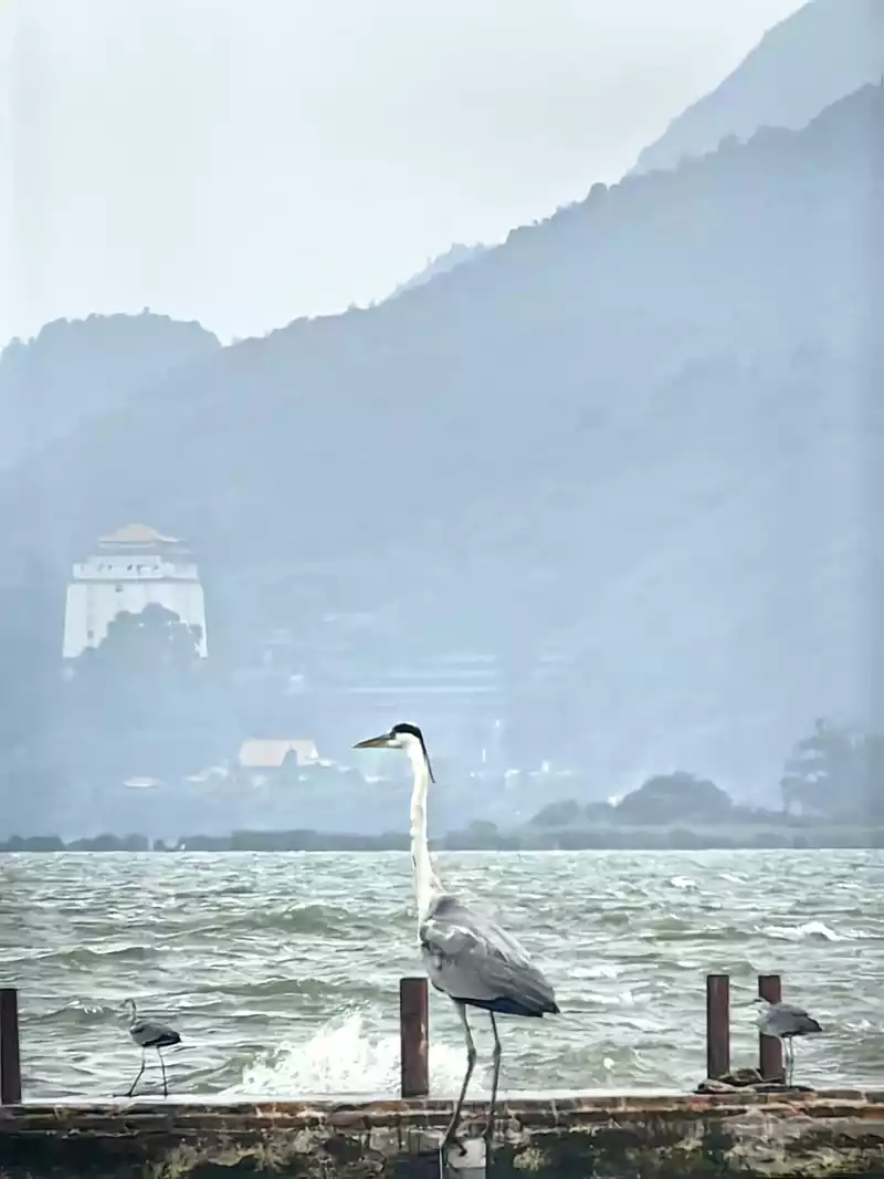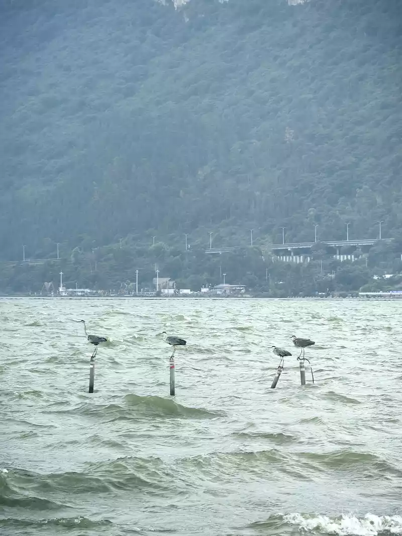 Dianchi Lake truly feels like an ocean, while Xishan Mountain rises like a massive wall on the opposite bank. It's not particularly tall, but its imposing form and rugged texture create a sense of imposing power.