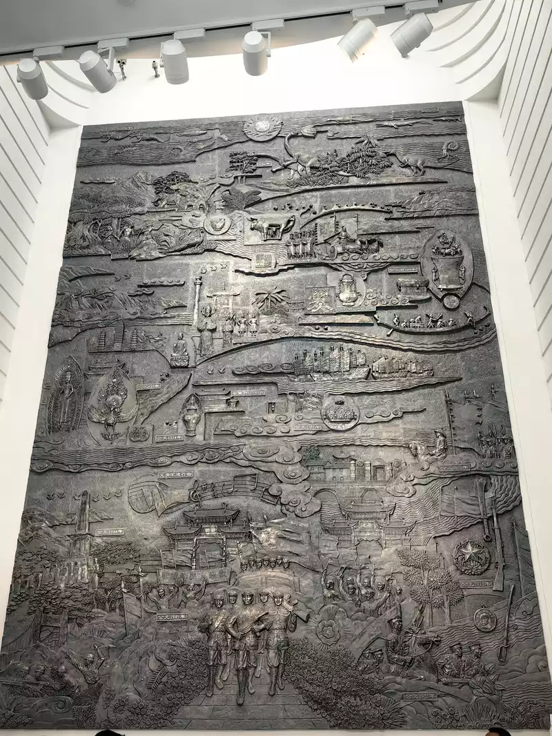 The auditorium's circular shape represents the sun, while the Three Gorges Museum's curved shape represents the moon. The two complement each other, forming the Chinese character "Ming," symbolizing the struggle to resist the Qing and restore the Ming Dynasty. Please ignore this.