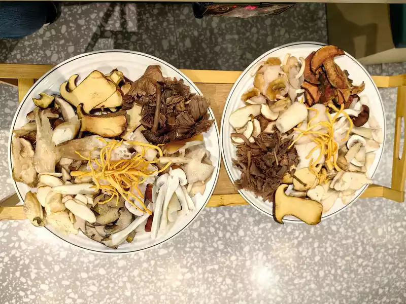 Specially talk about mushroom hotpot. It's about one chicken with about 2 pounds of various mushrooms. It's still delicious! They don't give you chopsticks before it's cooked, saying they're afraid you'll mess up your words. When the food is cooked and the pot is boiling, they take a small bowl with a small spoon and put your phone number on it, saying that they can get back to you if something goes wrong.