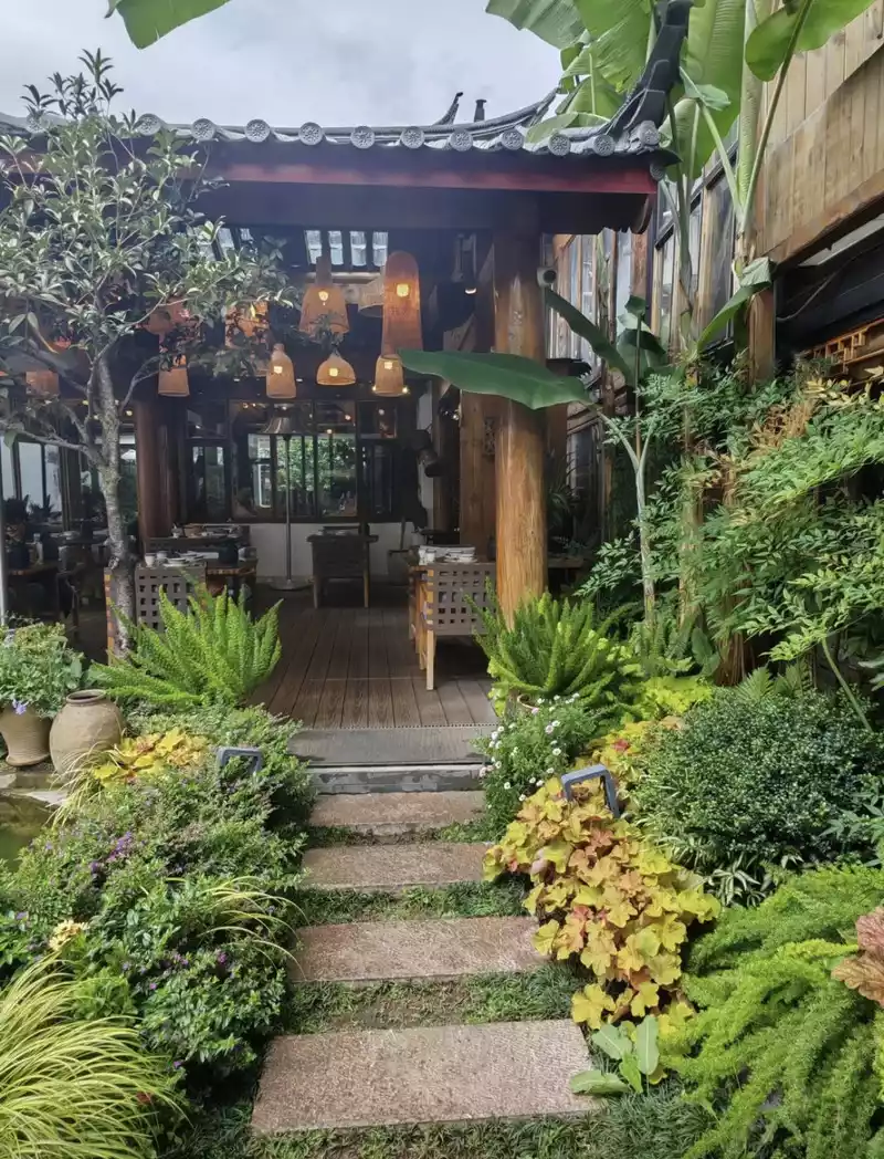 The streets are winding, and flowers and plants grow freely along the roadside. Unlike the artificiality of Lijiang, it has a more leisurely and wild charm.