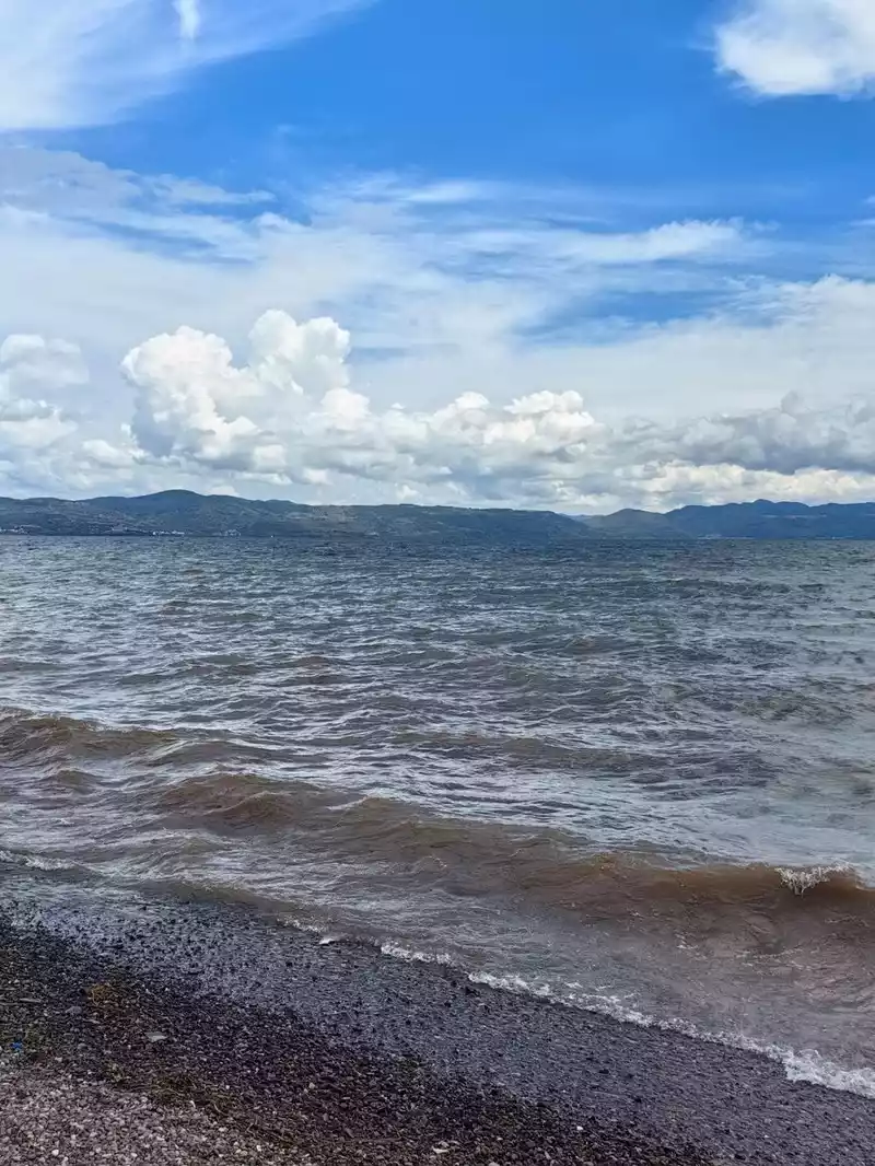 After that, I checked in the window of Erhai Lake. There is an abandoned wall with windows on the shore of Erhai Lake in Wolu Mountain, through which you can take pictures of the rippling Erhai Lake, and it takes about 20 minutes to queue up for shooting. There are also beaches and cliff caves around. Here you can also see Xiaoputuo, one of the eight ancient views of Erhai Lake. Backed by the sea of clouds and standing above the sea, there is a Guanyin Pavilion built on the island.