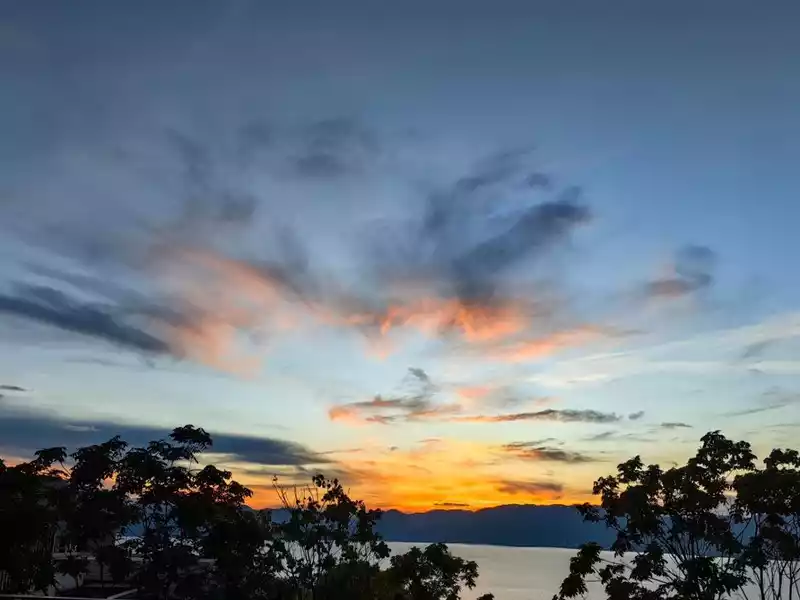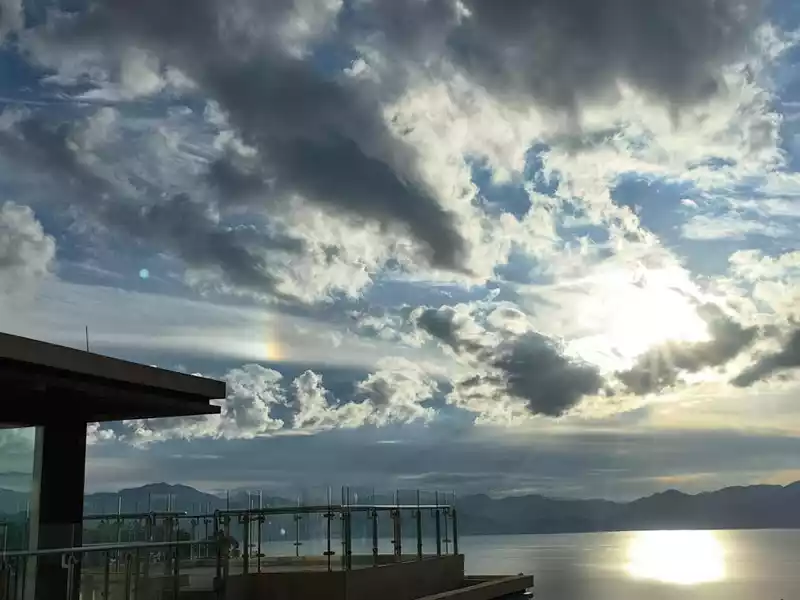 about 17:00 in the evening, the sunset shines on the sea surface through the clouds, forming a beautiful Tyndall effect, which is the best observation point on the high slope of Wenbi Village. Climbing high at night and looking into the distance, while blowing the cool breeze, you can see the night fishing landscape of Erhai Lake, and the fishing lights on the fishing boats converge into thousands of miles of galaxies on the Erhai Sea.