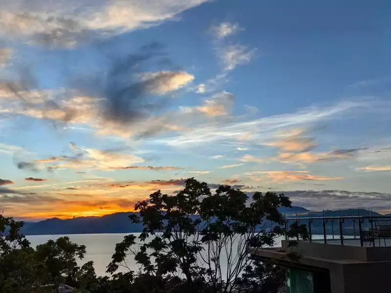 We accidentally found that walking along the road of the community, we can walk directly to the Internet celebrity Xi'an Club and the Sun Mountain Internet Red Bridge in about ten minutes. As soon as I went out, a small rainbow appeared in the sky. At sunset, there were a lot of people in the Xi'an Clubhouse, so we didn't go in, we watched the sunset directly on the Internet celebrity bridge, and then returned to the observation deck of the community to continue watching the sunset.