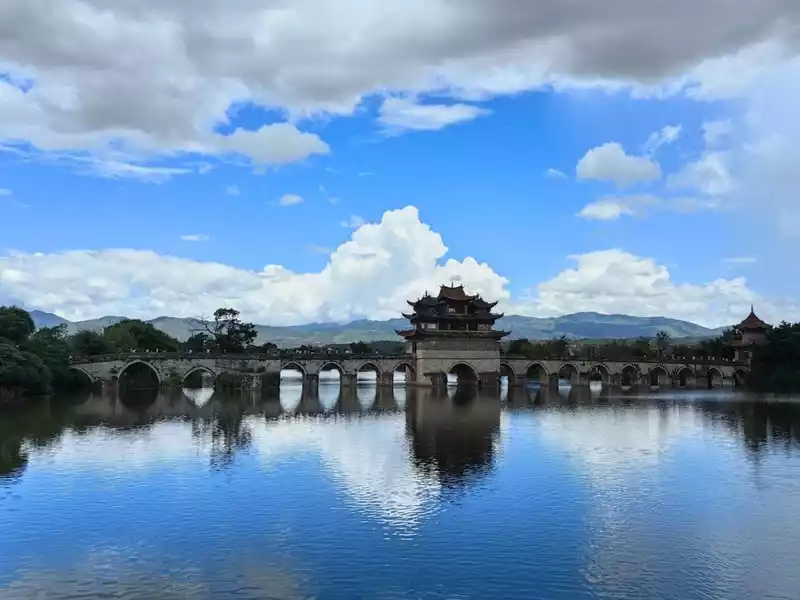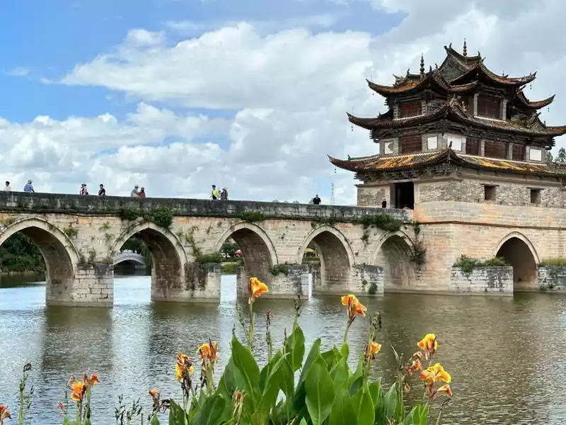 We had lunch in the ancient city of Jianshui and went to the Seventeen Hole Bridge. A place that has been seen many times in photos. The seventeen-hole bridge under the blue sky and white clouds is very beautiful.