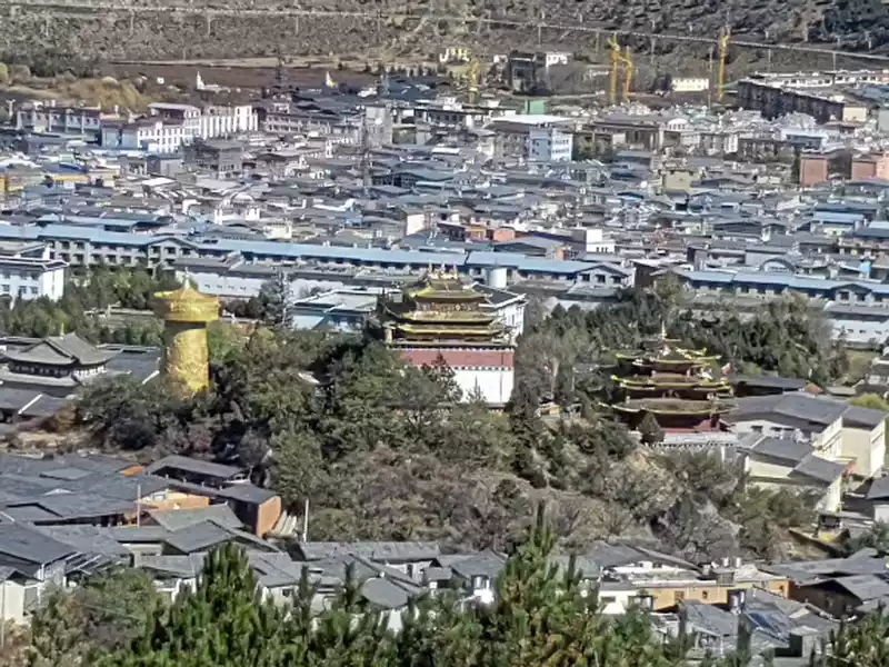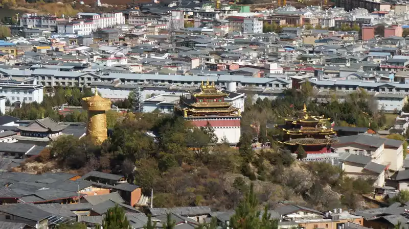 This is the highest point in downtown Shangri-La, at an altitude of approximately 3,400 meters. It offers a great view of the entire city and Dukezong Ancient Town.