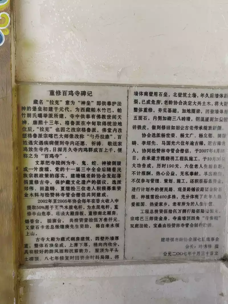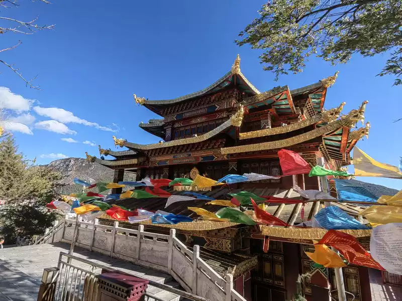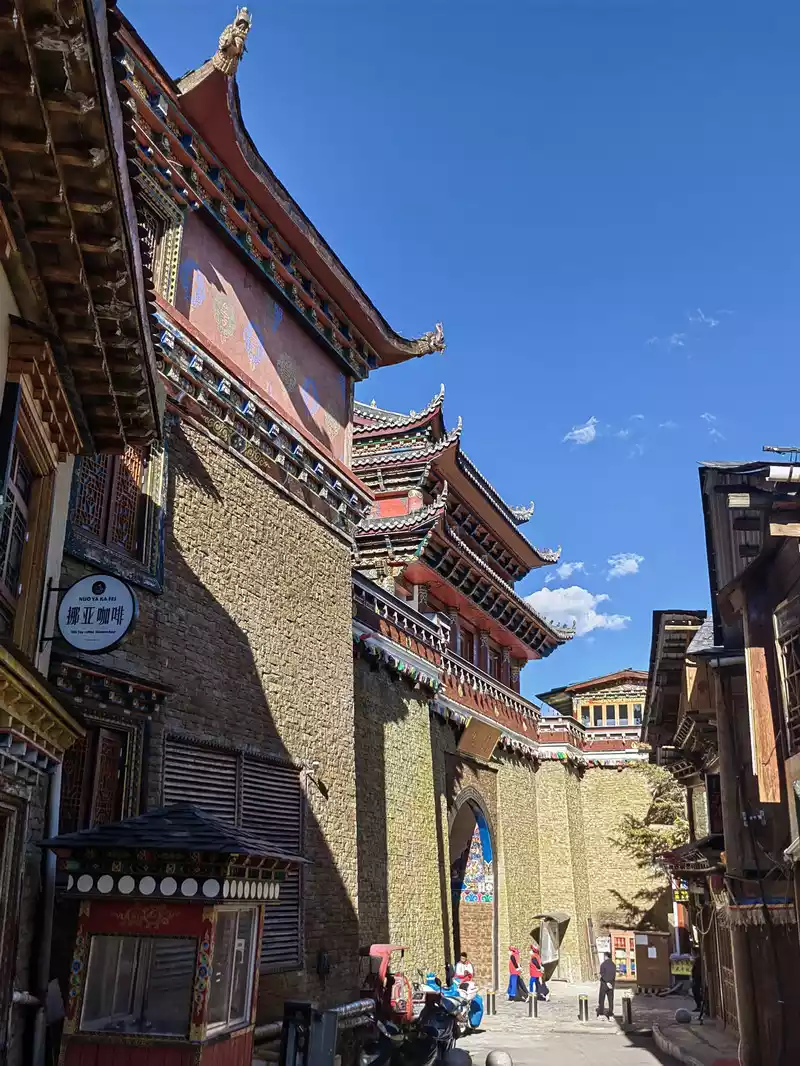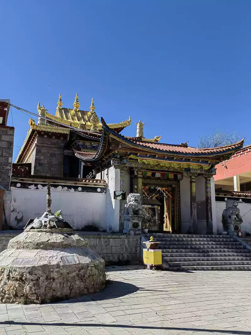 Shangri-La City was originally named "Zhongdian" and "Jiantang" in Tibetan. On December 17, 2001, it was renamed Shangri-La County. In 2014, the county was abolished and the city was established. "Shangri-La" is a transliteration of the Tibetan word for "sun and moon in the heart." It is also translated as "Shambhala," meaning "paradise." Shangri-La became a popular destination in the 1930s after appearing in British author James Hilton's novel "Lost Horizon." It was soon adapted into a film of the same name, which won multiple Oscars and further cemented its global fame. The Shangri-La Tibetan area boasts a long history and stunning natural scenery, including Pudacuo National Park, Dukezong Ancient Town, Ganden Songzanlin Monastery, and Tiger Leaping Gorge. Following the principle of "far first, then near," drive to Baiji Temple. Baiji Temple, a Gelugpa monastery of Tibetan Buddhism, was built in the Ming Dynasty (some say it was built in the Yuan Dynasty) and is located atop the Western Hills behind Dukezong Ancient Town. Since the temple's establishment, local residents have visited it to pray for disasters and release a chicken onto the mountain whenever they encounter disasters. During incense burning, people often scatter food to feed the chickens, leading to the widespread flocking of chickens inside and outside the temple, earning it the nickname "Hundred Chicken Temple." In 1869, the eighth year of the Tongzhi reign of the Qing Dynasty, the temple was burned down by bandits. In 1873, official Feng Naixiong donated funds for its reconstruction. It was destroyed again during the Cultural Revolution. In 1990, it was rebuilt with funds raised by the Central Town Elderly Association and managed by people sent by Songzanlin Temple.