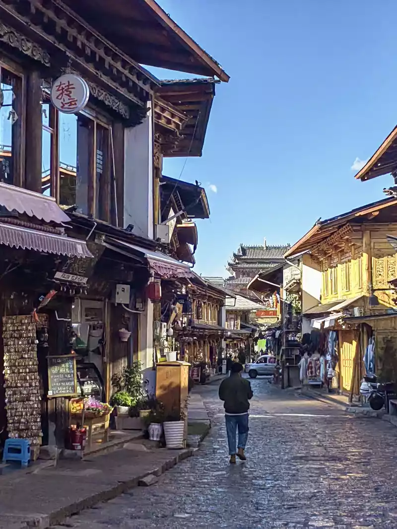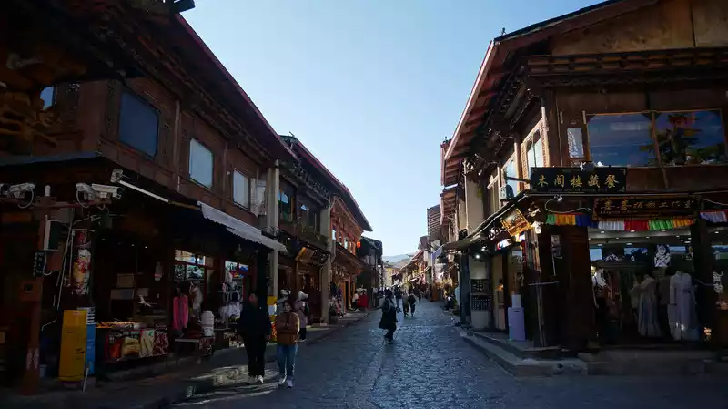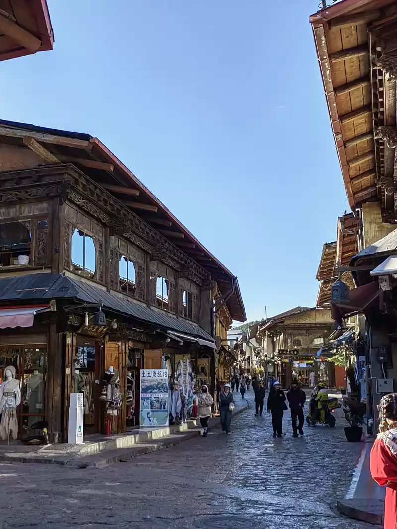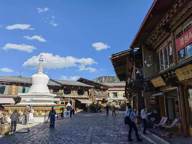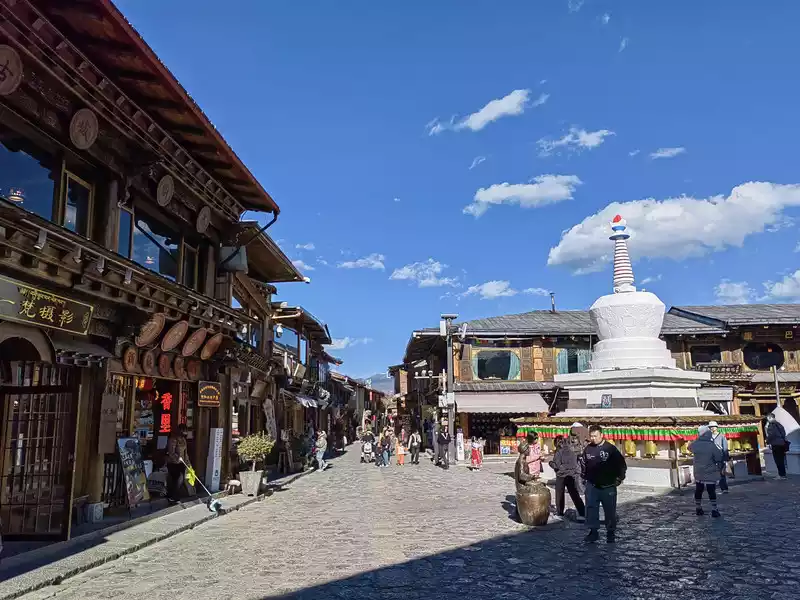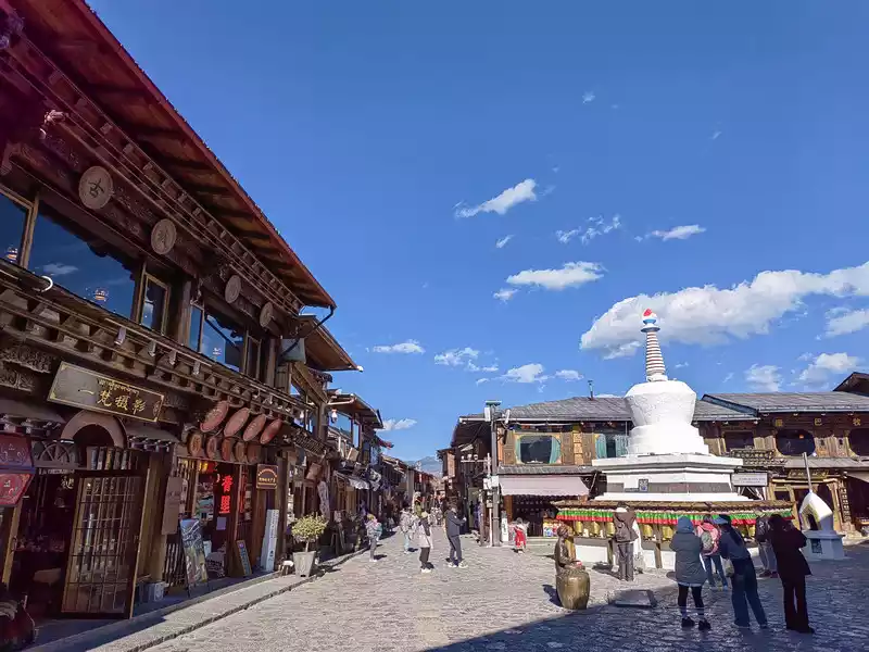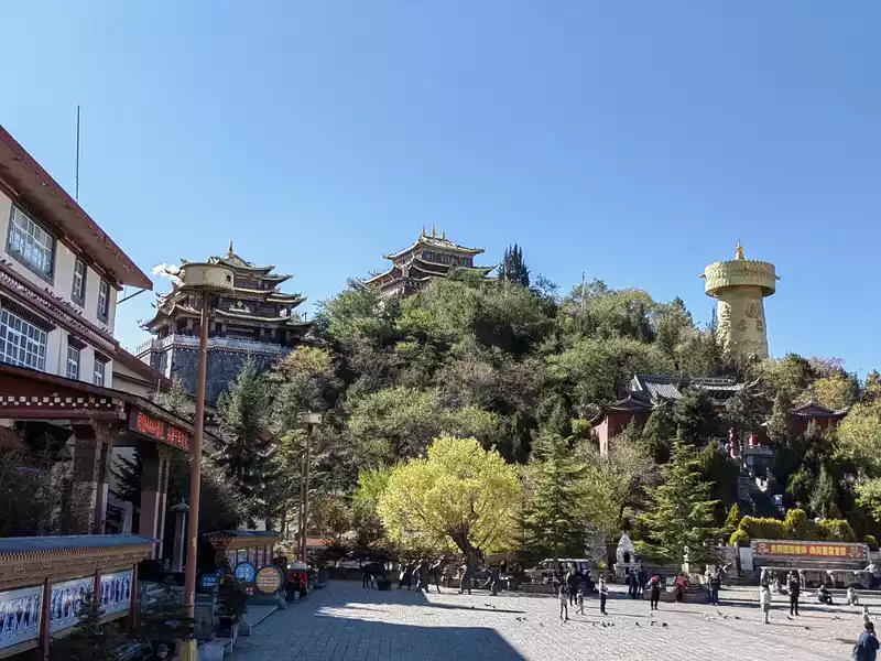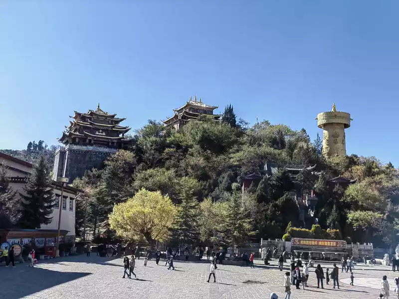 After descending the mountain, drive to the parking lot at Moonlight Square and then walk to Guishan Park and Dukezong Ancient Town.